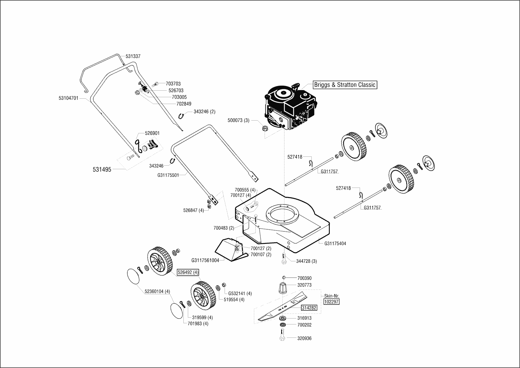 Zeichnungen von Ginge Benzinrasenmäher SA 46 Favorit 01/2001 - 02/2002 mit der Geräte-Artikelnr. 117932: