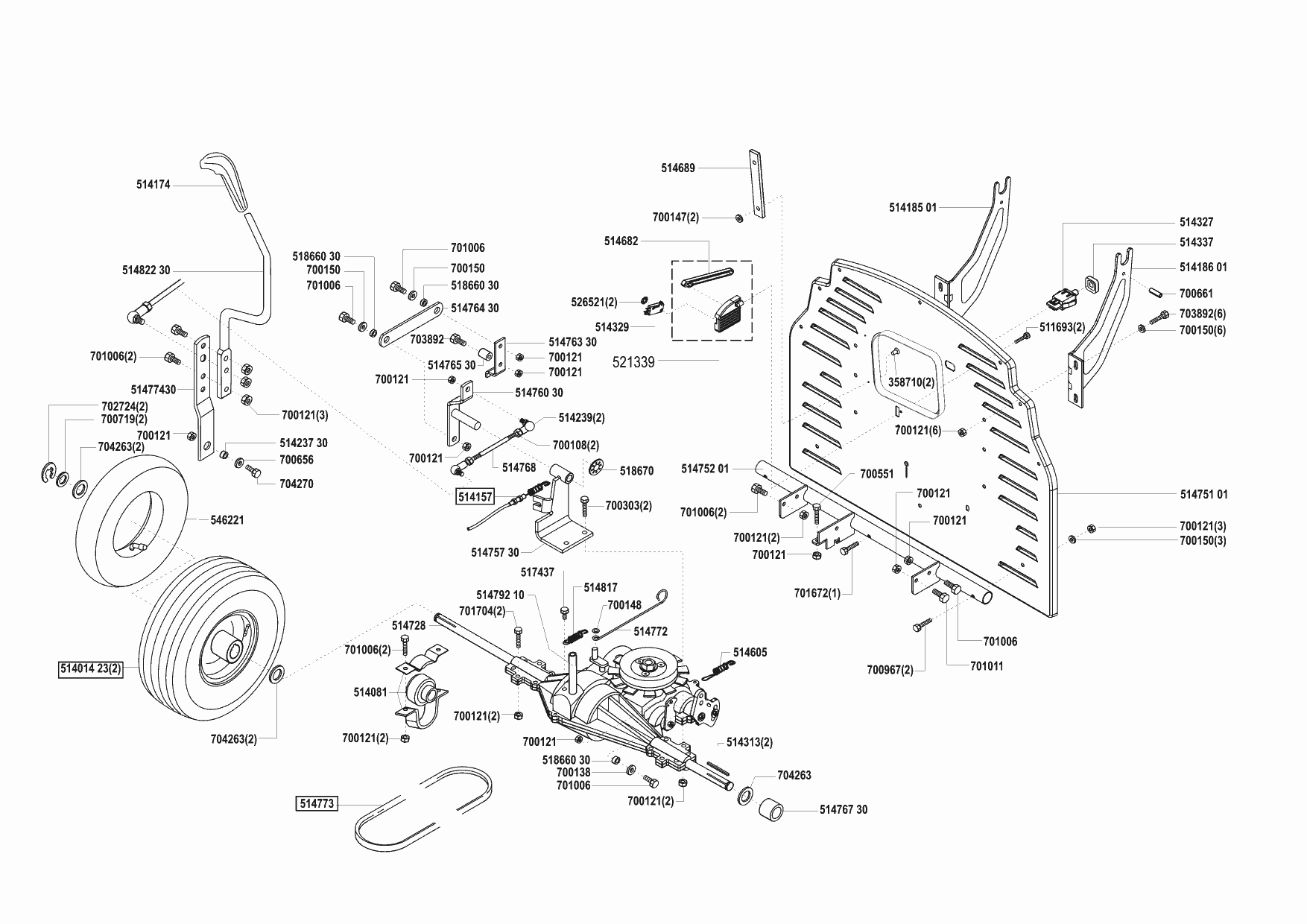 Zeichnungen von Concord Rasentraktor T14-85 HD 01/2002 - 02/2002 mit der Geräte-Artikelnr. 110821: