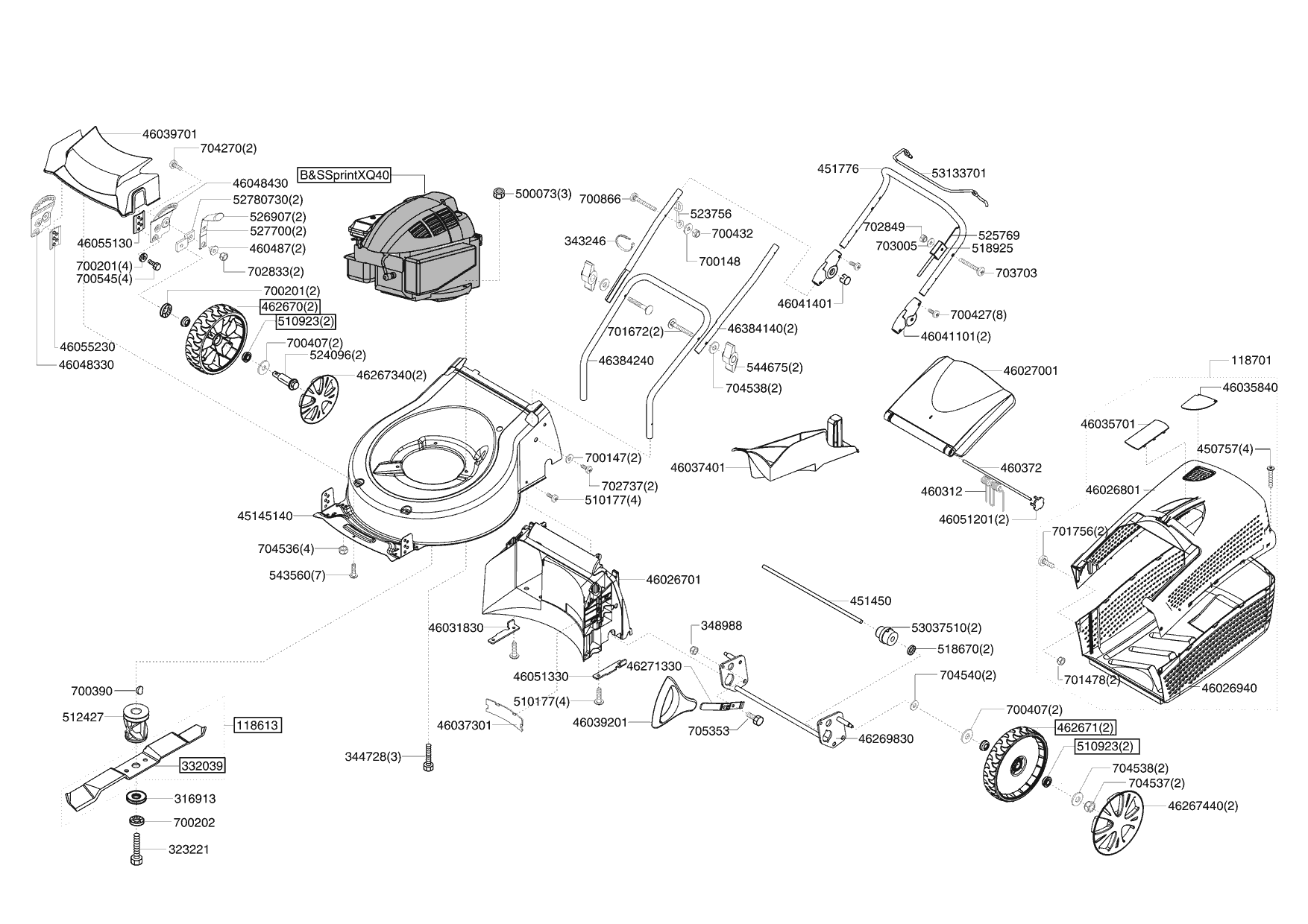 Zeichnungen von Ginge Benzinrasenmäher SILVER 470 B 01/2008 - 03/2008 mit der Geräte-Artikelnr. 118967: