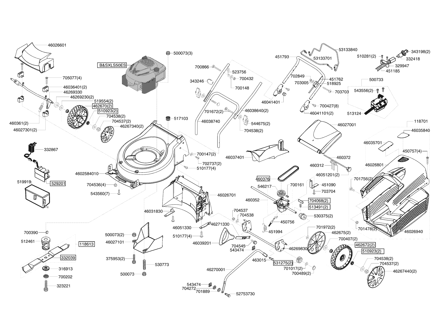Zeichnungen von Ginge Benzinrasenmäher SILVER 470 B AUTO ES 01/2008 - 06/2012 mit der Geräte-Artikelnr. 118969: