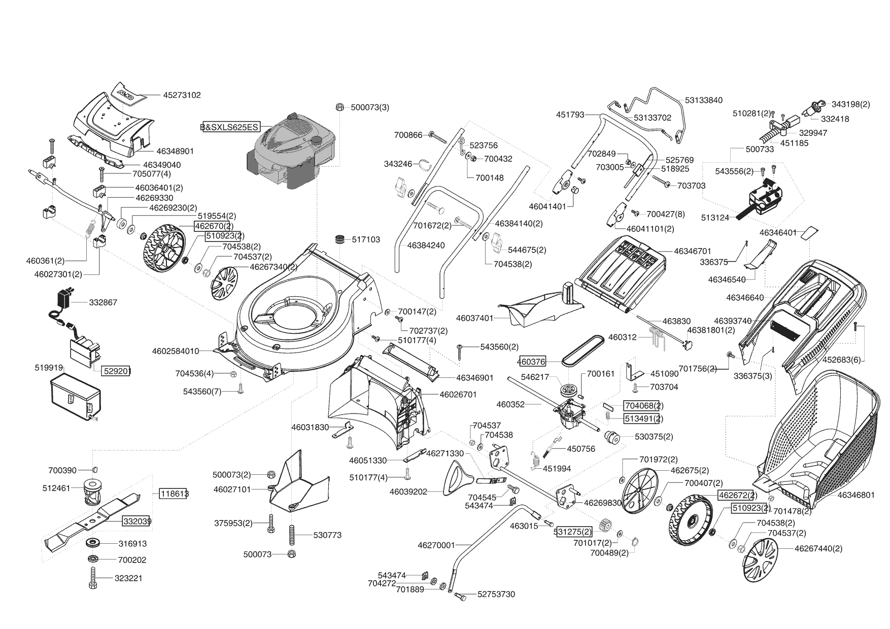 Zeichnungen von Ginge Benzinrasenmäher SILVER PR 470 B AUTO ES 01/2008 - 10/2009 mit der Geräte-Artikelnr. 119096: