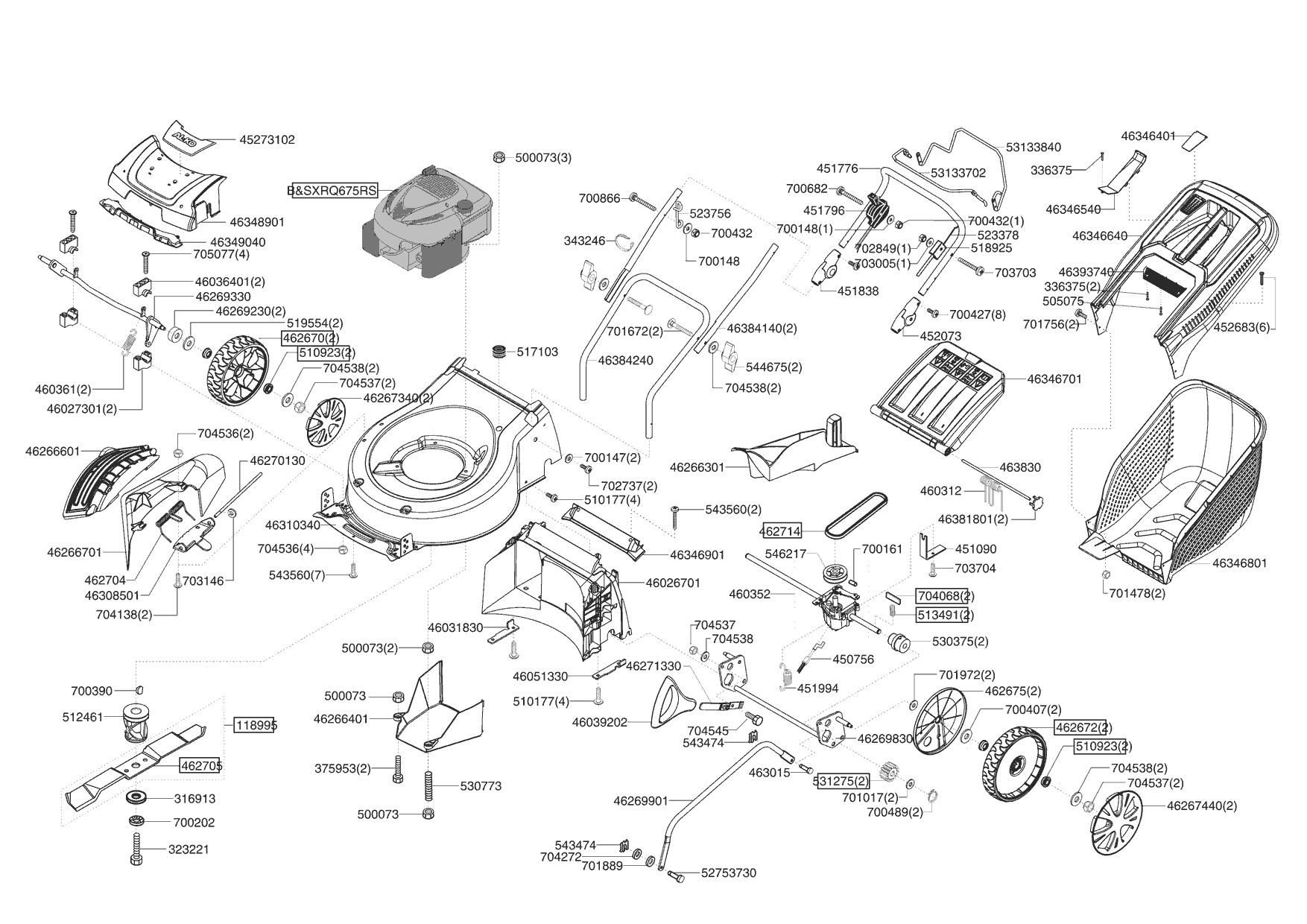 Zeichnungen von Ginge Benzinrasenmäher 520 B AUTO SILVER 01/2009 - 11/2009 mit der Geräte-Artikelnr. 119202: