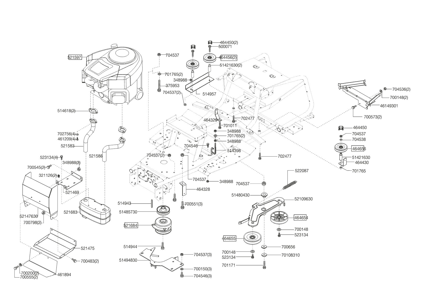 Zeichnungen von Powerline Rasentraktor T 20-102 HDE (F) 01/2010 - 02/2011 mit der Geräte-Artikelnr. 887179: