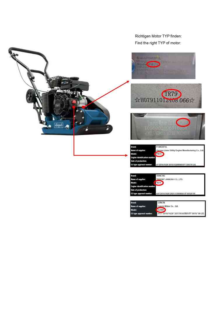 Ersatzteile für Scheppach Rüttelplatte XTP11 Espina Finnland (Gerätenr. 3904607987) - 0131 - MOTOR (Loncin)