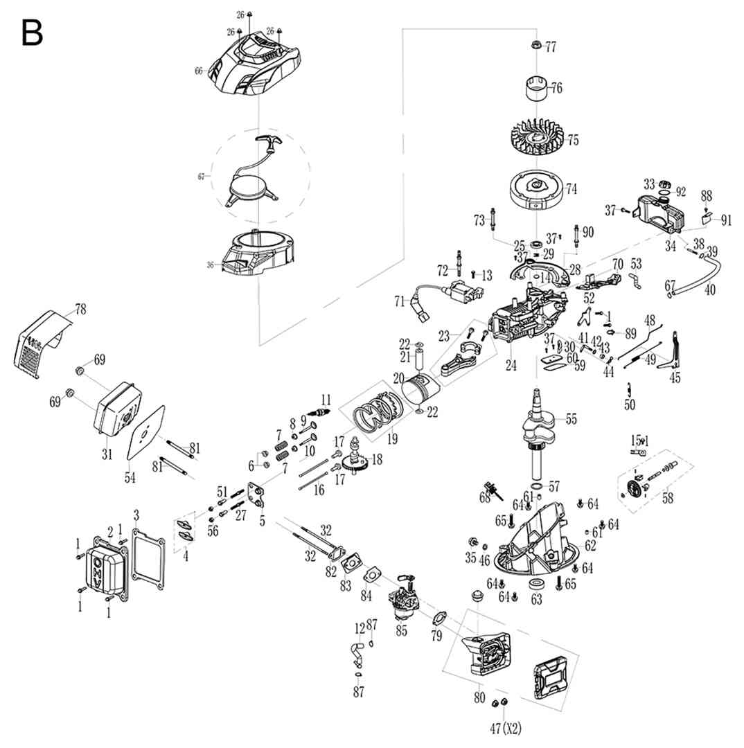 Ersatzteile für Scheppach Rasenmäher MD510 Zgonc Yellow Garden Line (Gerätenr. 3911206972) - 0162 - MS173-51 / MS173-51 PLUS / MD510 / MD511 - Alter Motor bis 7/2021