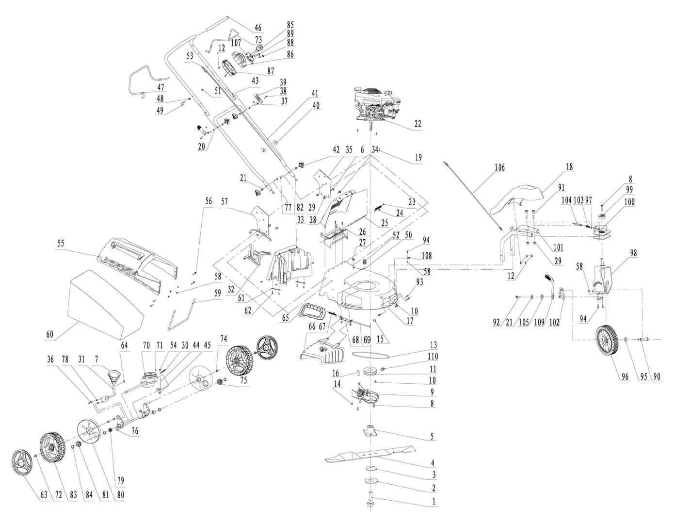 Ersatzteile für Scheppach Rasenmäher MS197-51-3W (Gerätenr. 59112529953) - 0162 - MS197-51-3W neuer Motor DV170 ab 7/2021