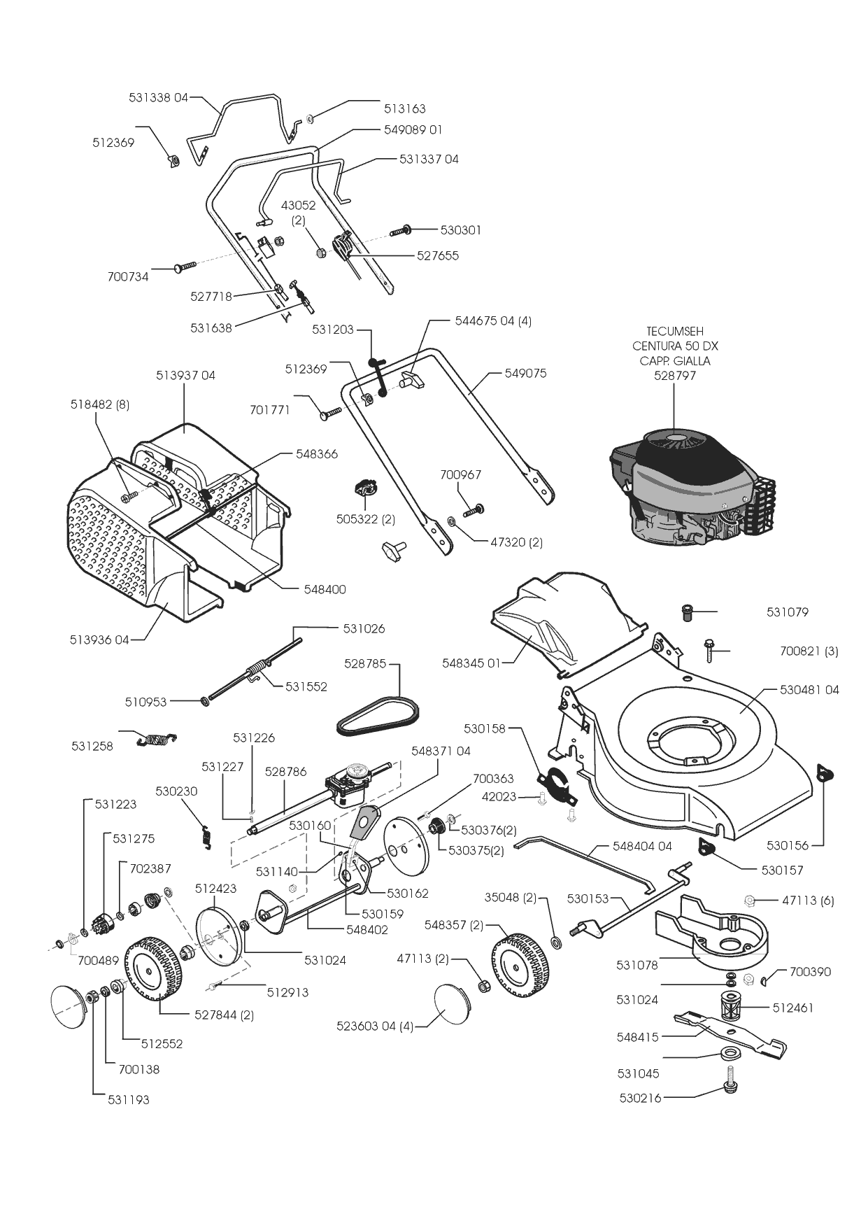 Zeichnungen von Sigma Benzinrasenmäher CF 52 BR 02/2000 - 02/2002 mit der Geräte-Artikelnr. 120525: