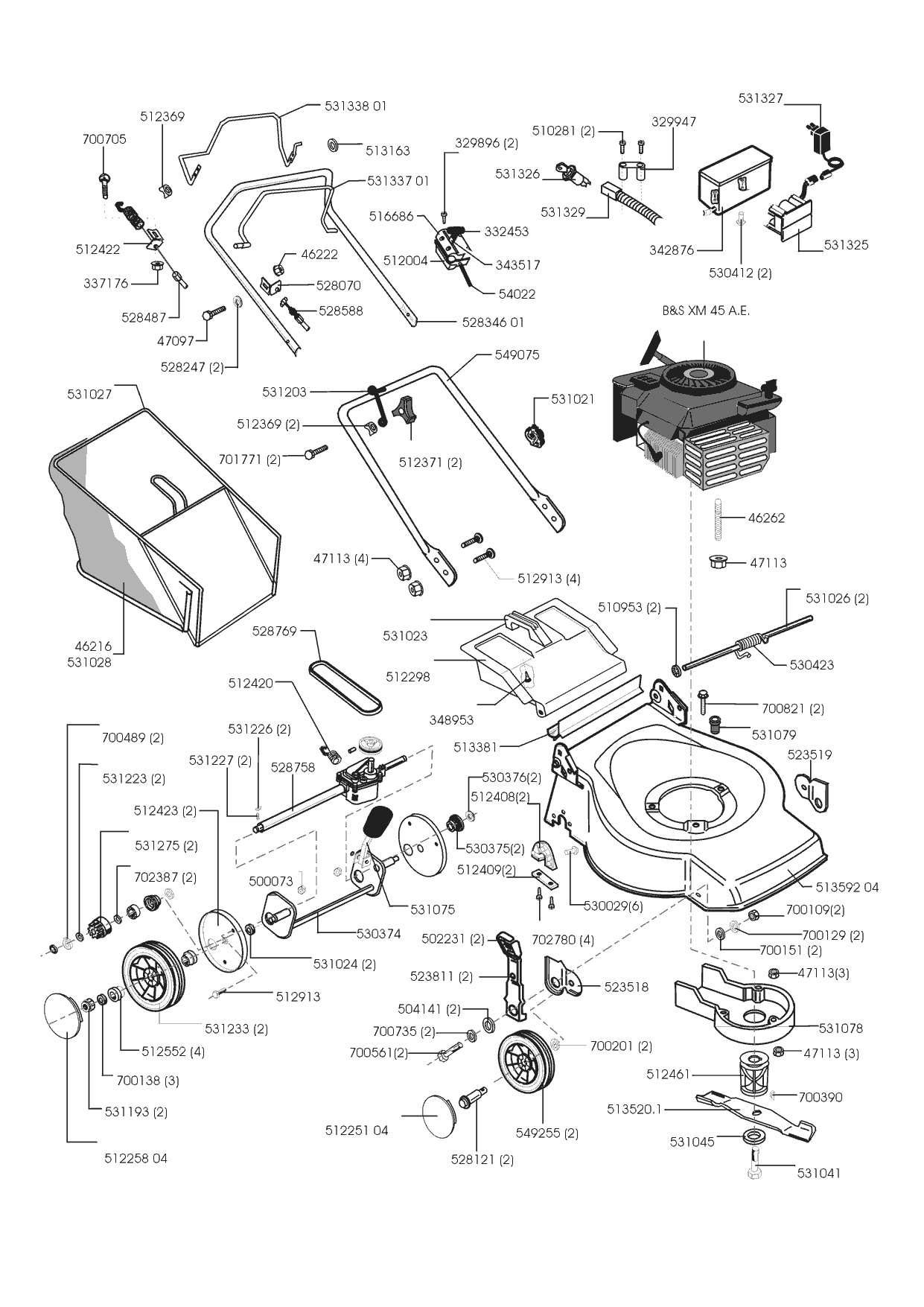 Zeichnungen von Ginge Benzinrasenmäher CL 46 Bauto ES 02/2000 - 03/2002 mit der Geräte-Artikelnr. 120482: