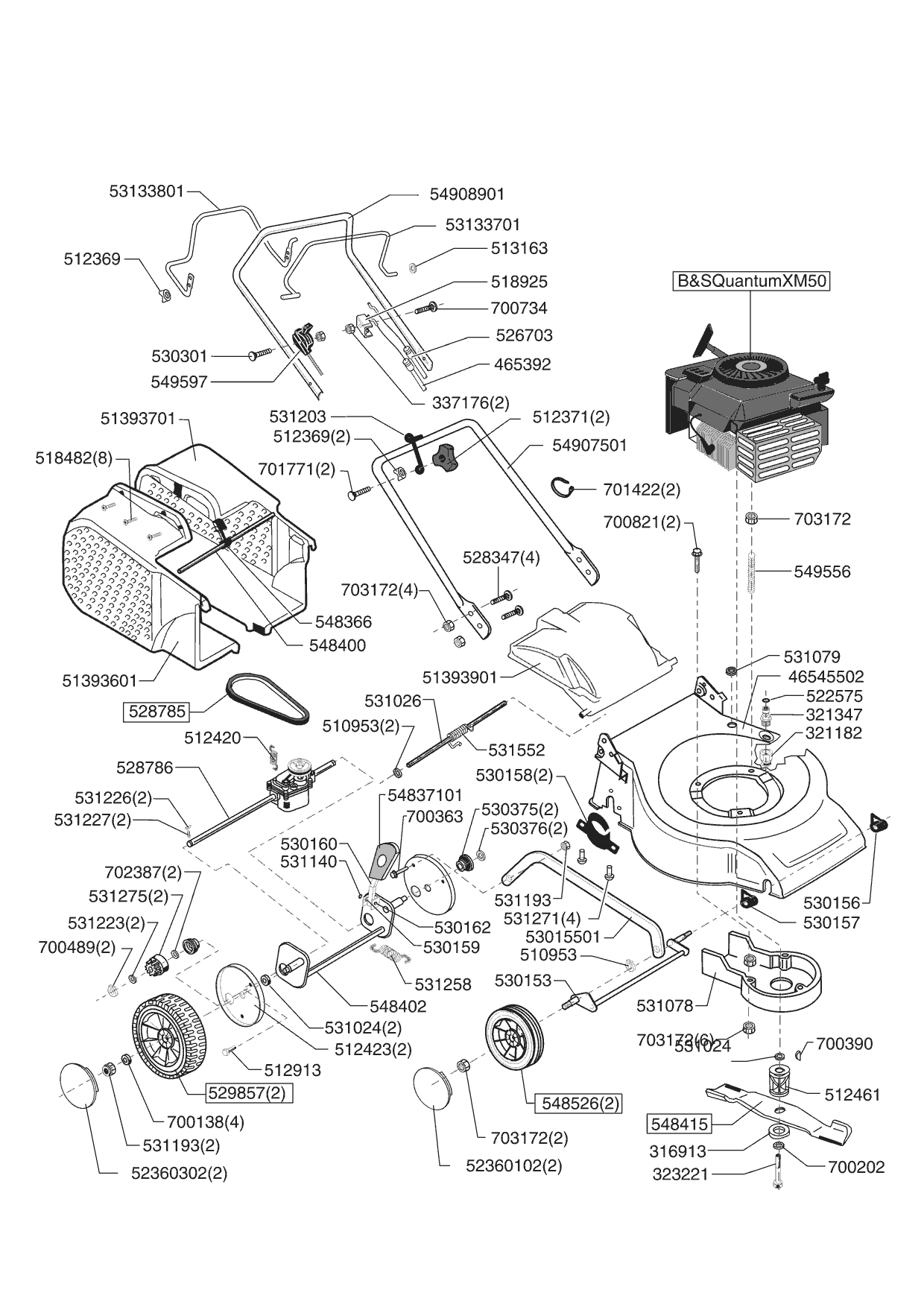 Zeichnungen von Sigma Benzinrasenmäher CLASSIC 5355 BR 02/2005 - 02/2007 mit der Geräte-Artikelnr. 121196: