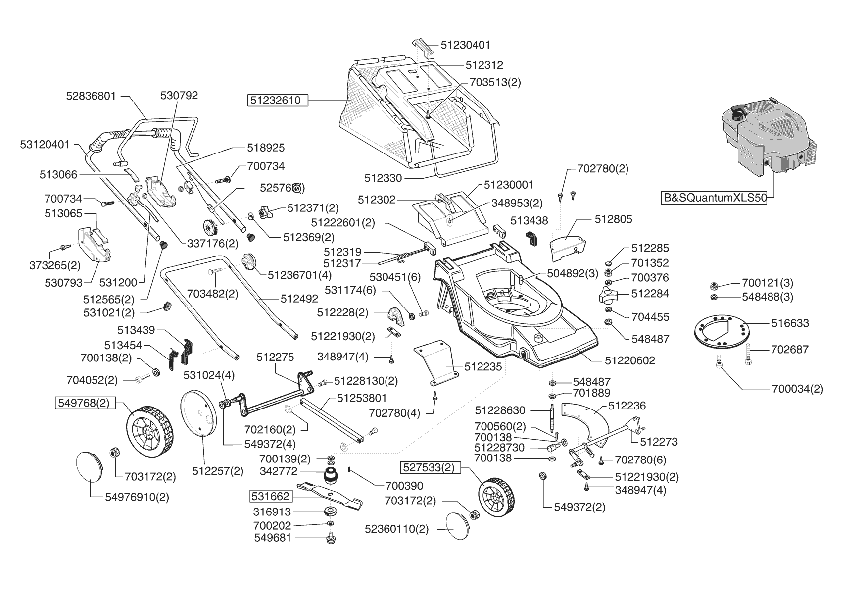 Zeichnungen von Sigma Benzinrasenmäher HVC 485 B 02/2006 - 11/2006 mit der Geräte-Artikelnr. 120821: