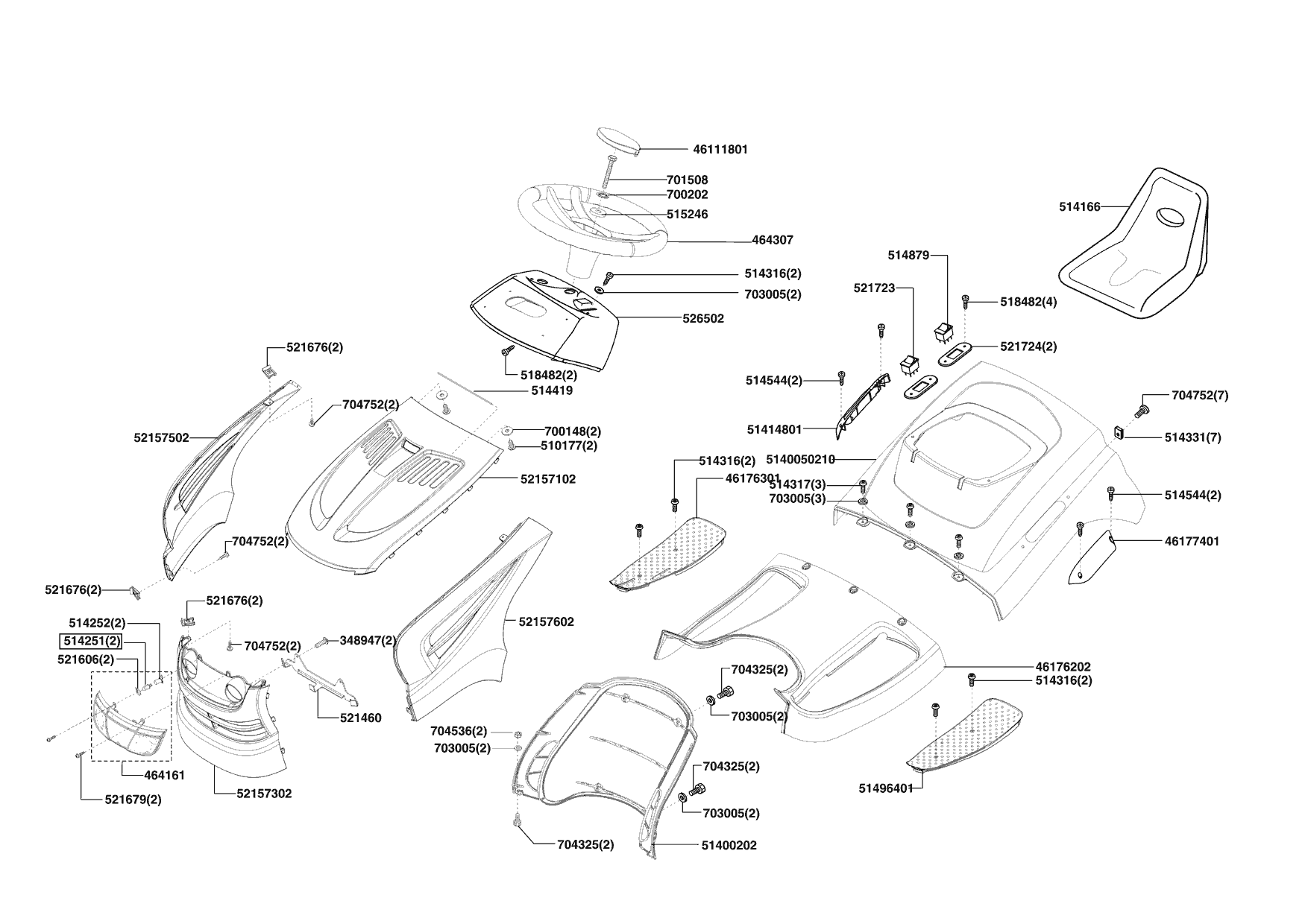 Zeichnungen von Powerline Rasentraktor T 15-92 HDE 02/2009 - 01/2010 mit der Geräte-Artikelnr. 118864: