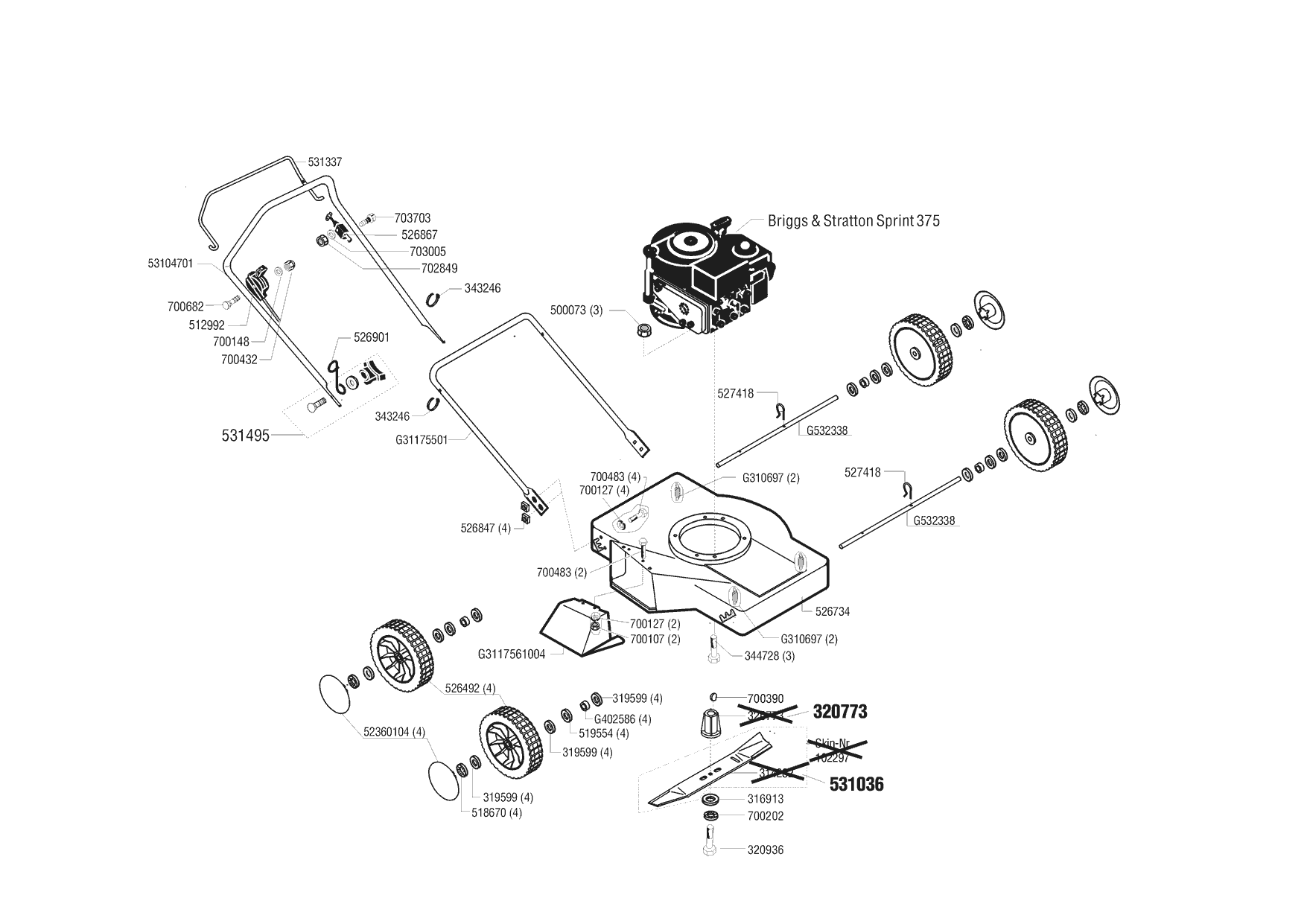 Zeichnungen von Ginge Benzinrasenmäher Classic 46 SB 03/1998 - 08/1998 mit der Geräte-Artikelnr. 117755: