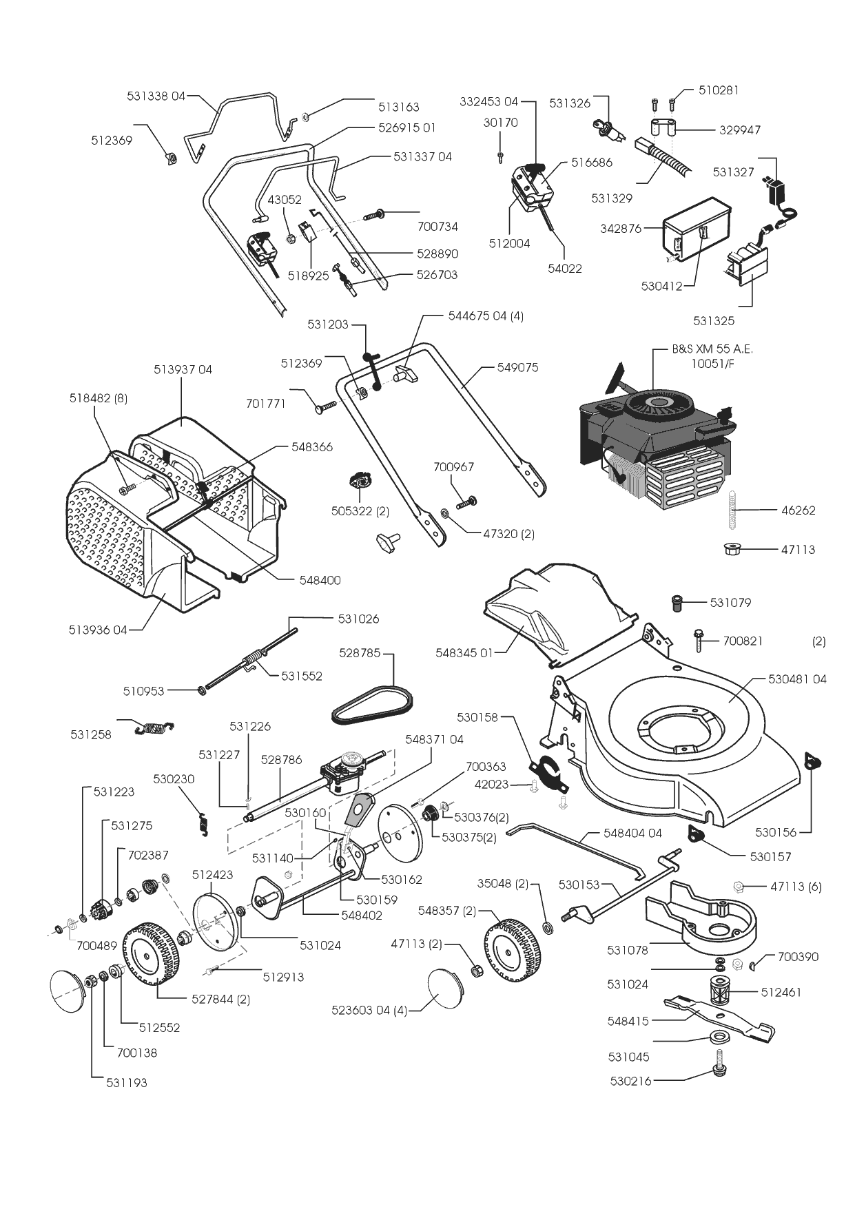 Zeichnungen von Sigma Benzinrasenmäher CF 52 BRE 03/2000 - 03/2002 mit der Geräte-Artikelnr. 120526: