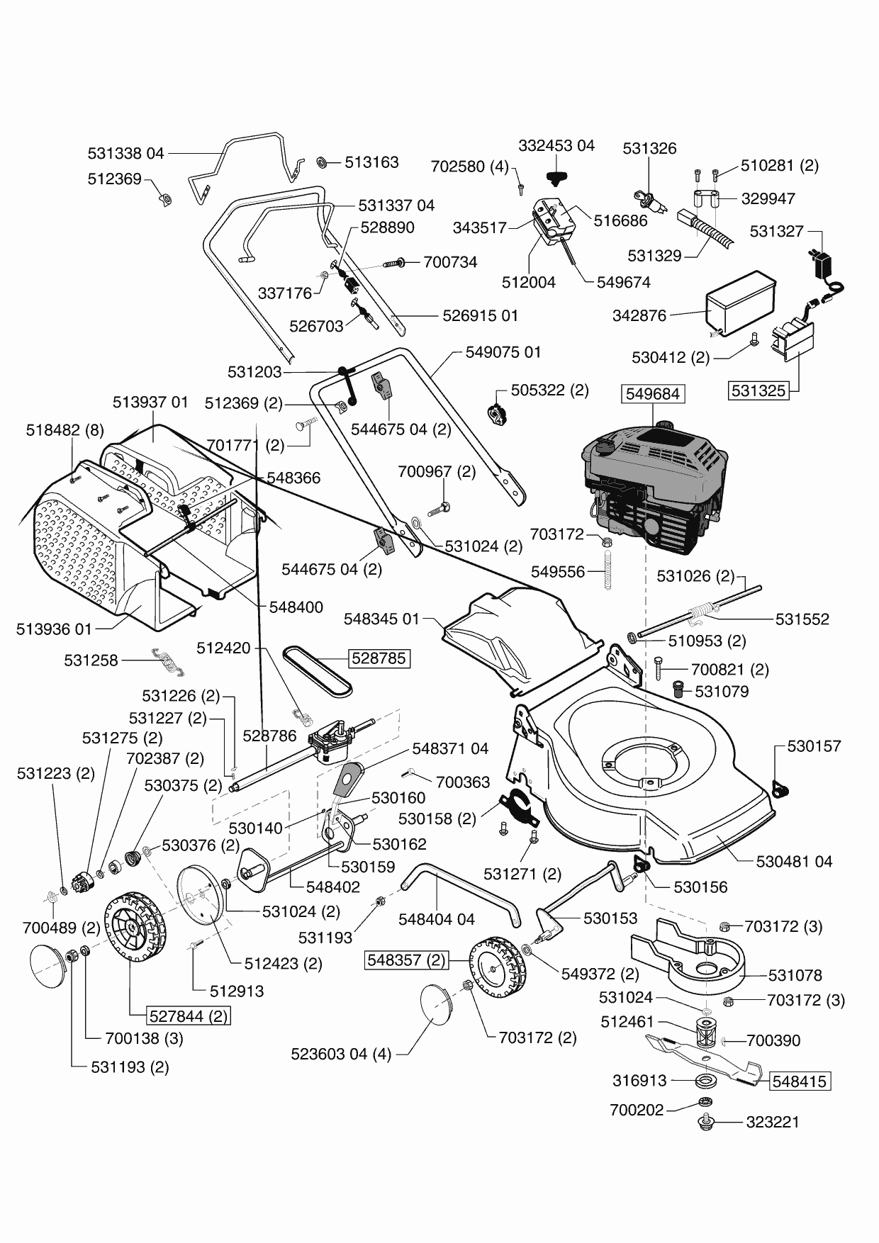 Zeichnungen von Ginge Benzinrasenmäher Rasaero 52 Lux Auto ES 03/2002 - 04/2003 mit der Geräte-Artikelnr. 120954: