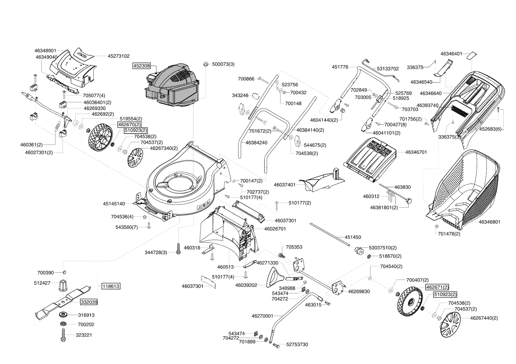 Zeichnungen von Ginge Benzinrasenmäher Silver Premium 470 B 03/2008 - 01/2009 mit der Geräte-Artikelnr. 119094: