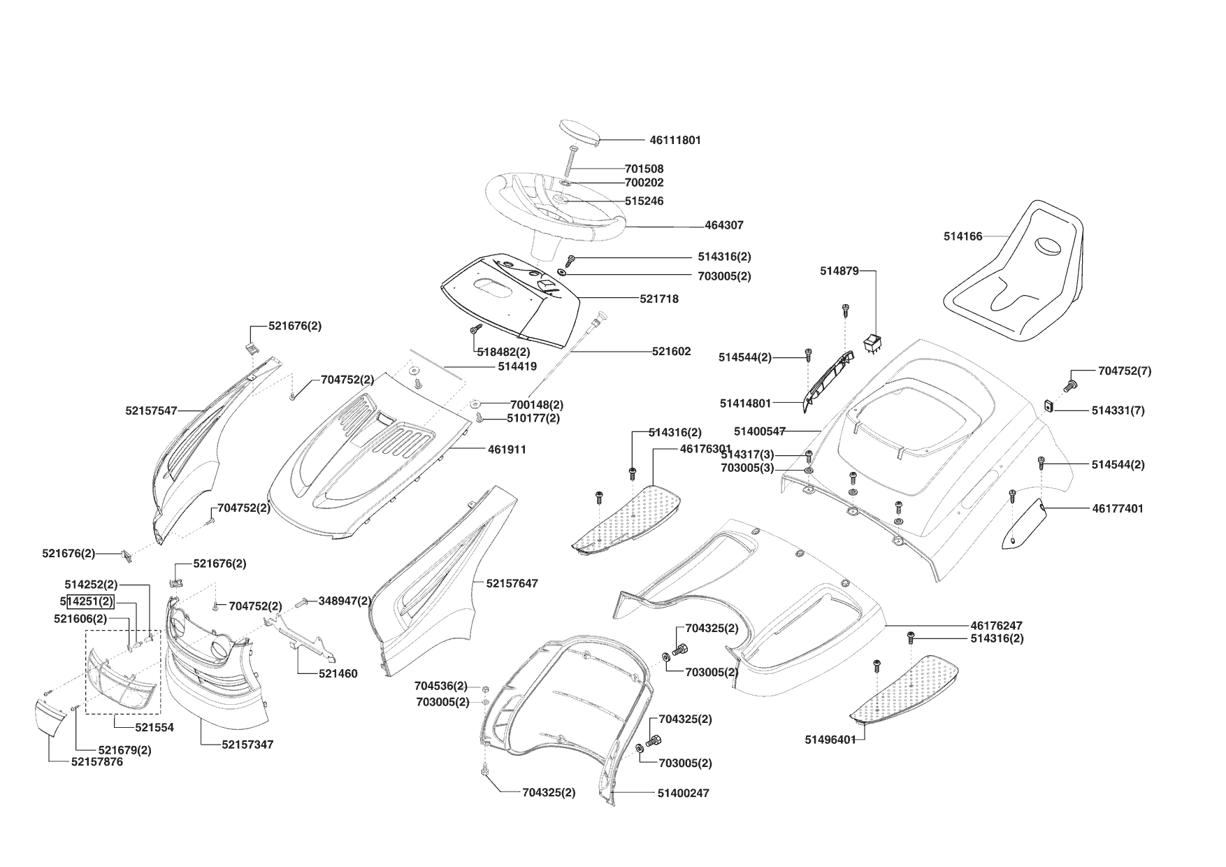 Zeichnungen von Brill Rasentraktor Crossover 92/16 H OHV 03/2009 - 12/2009 mit der Geräte-Artikelnr. 118900: