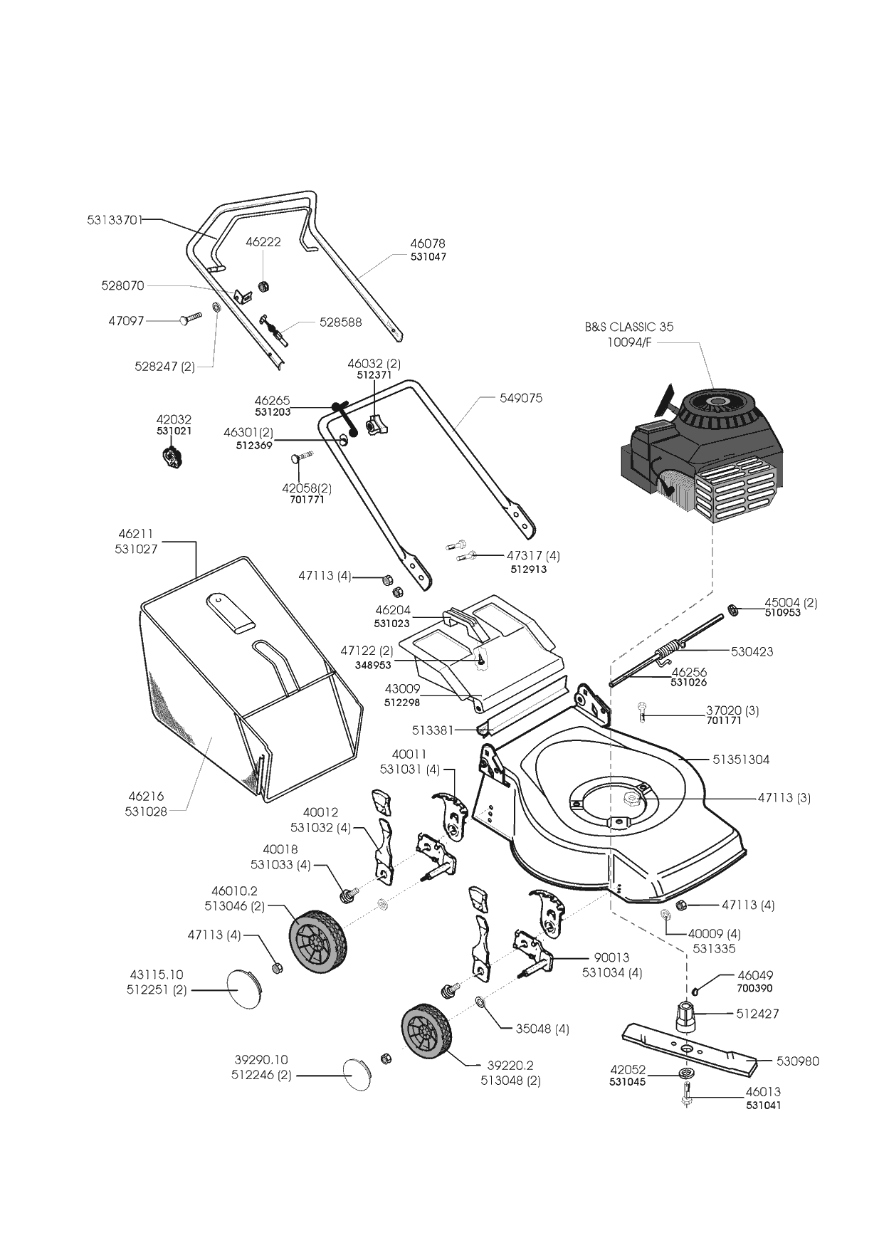 Zeichnungen von Sigma Benzinrasenmäher NL 444 04/1998 - 03/2001 mit der Geräte-Artikelnr. 120701: