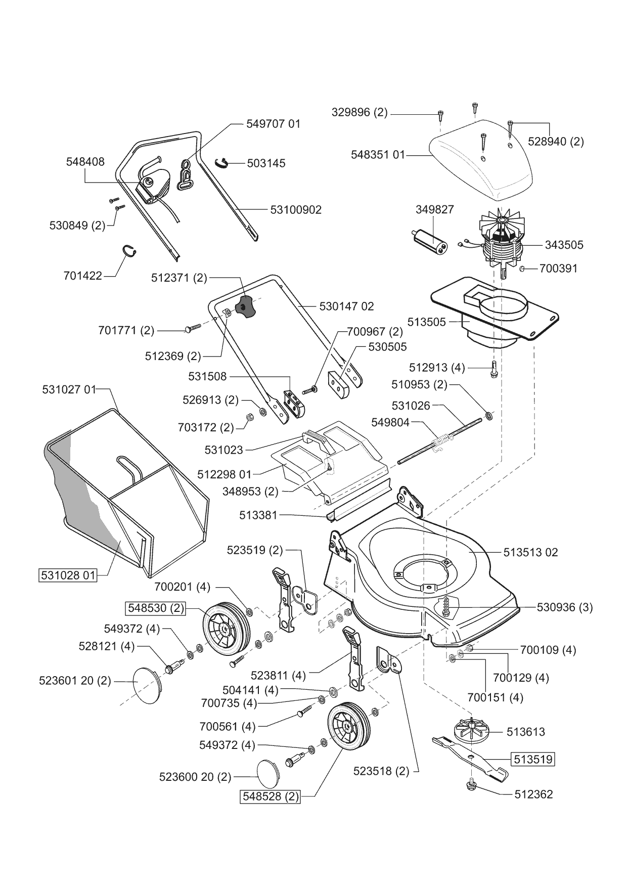 Zeichnungen von Powerline Elektrorasenmäher 4000 E 05/2003 - 01/2004 mit der Geräte-Artikelnr. 121126: