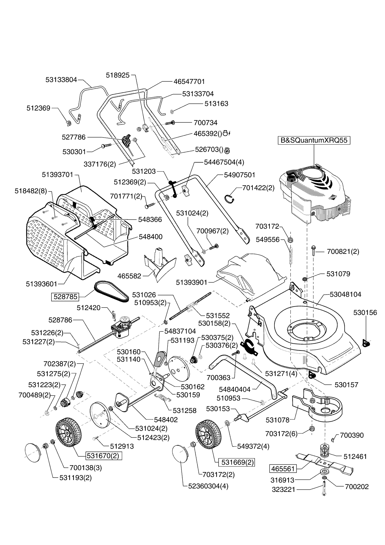 Zeichnungen von Ginge Benzinrasenmäher RASAERO 52 BC AUTO 05/2006 - 05/2007 mit der Geräte-Artikelnr. 121168: