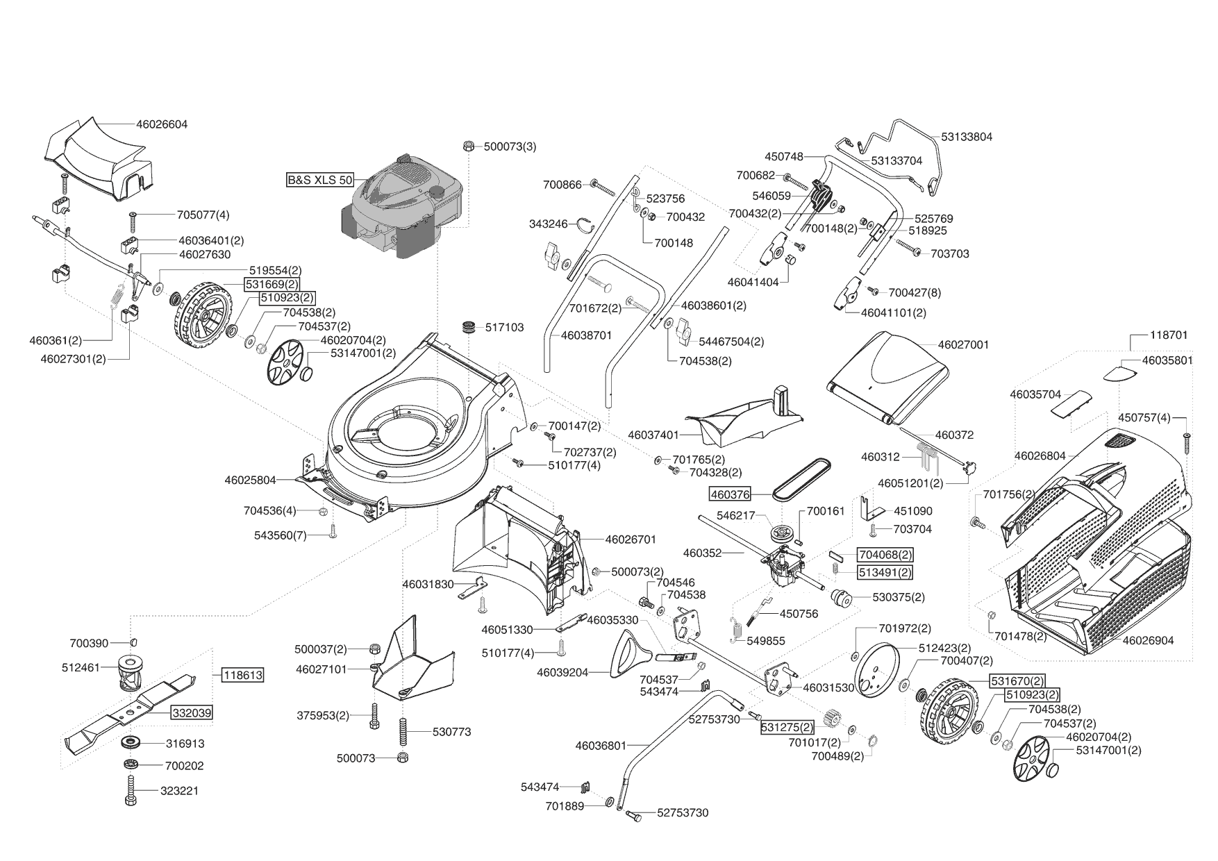 Zeichnungen von Ginge Benzinrasenmäher Comfort 470 B Auto Bio-Combi 05/2006 - 07/2006 mit der Geräte-Artikelnr. 118760: