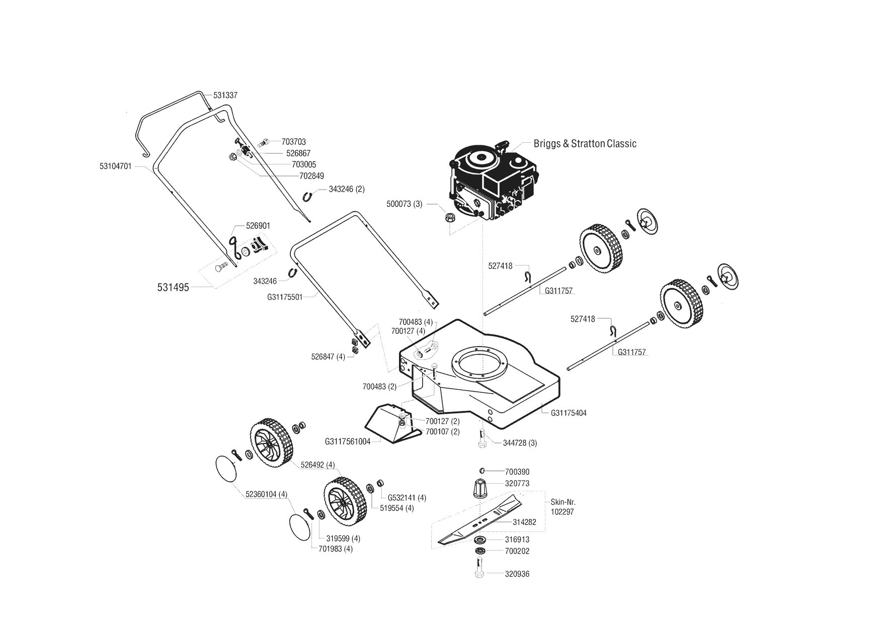 Zeichnungen von Ginge Benzinrasenmäher 46 Seite 06/1998 - 06/1999 mit der Geräte-Artikelnr. 117752: