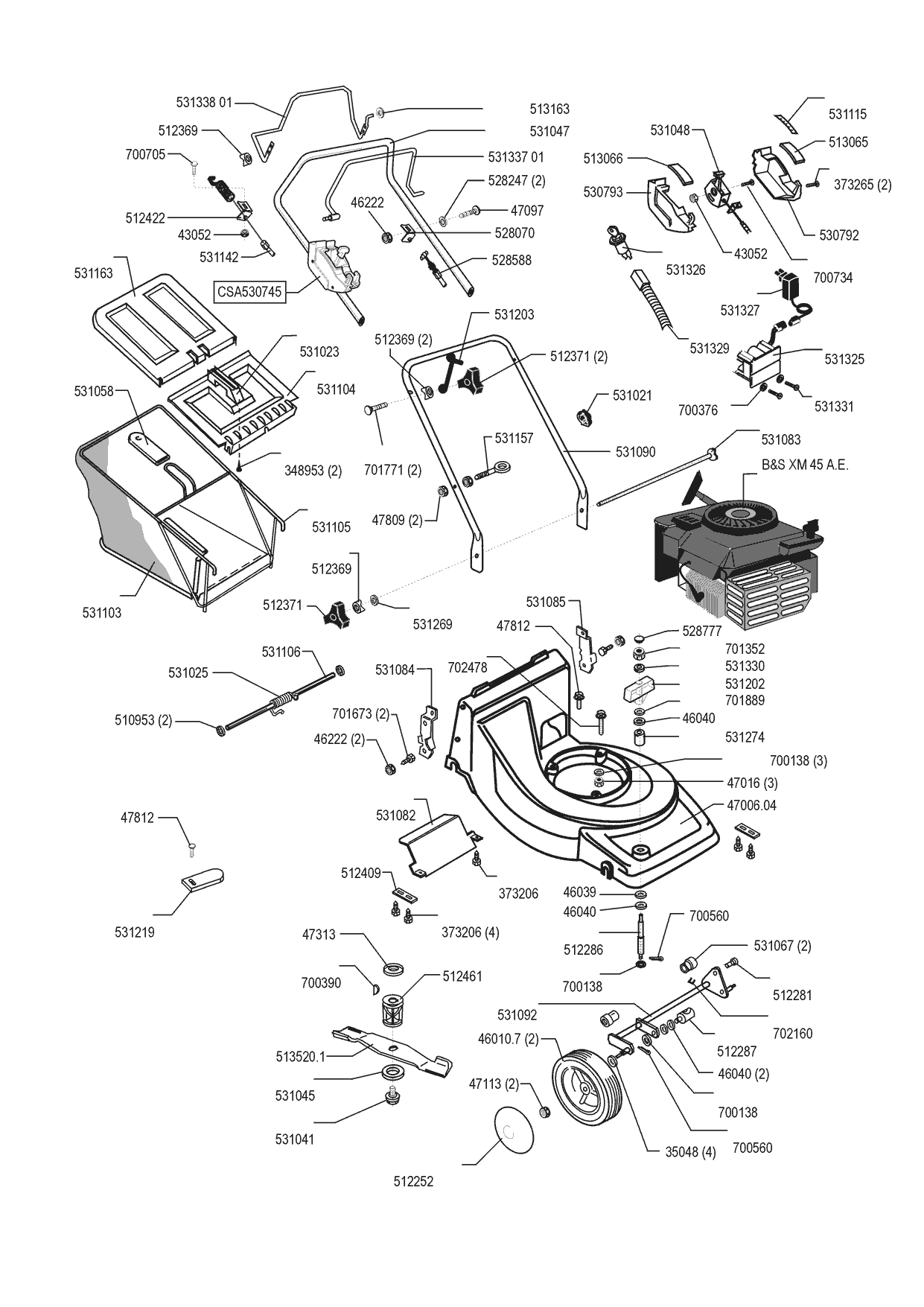 Zeichnungen von Ginge Benzinrasenmäher Bilka 47 Alu ES 06/1999 - 09/2001 mit der Geräte-Artikelnr. 120891: