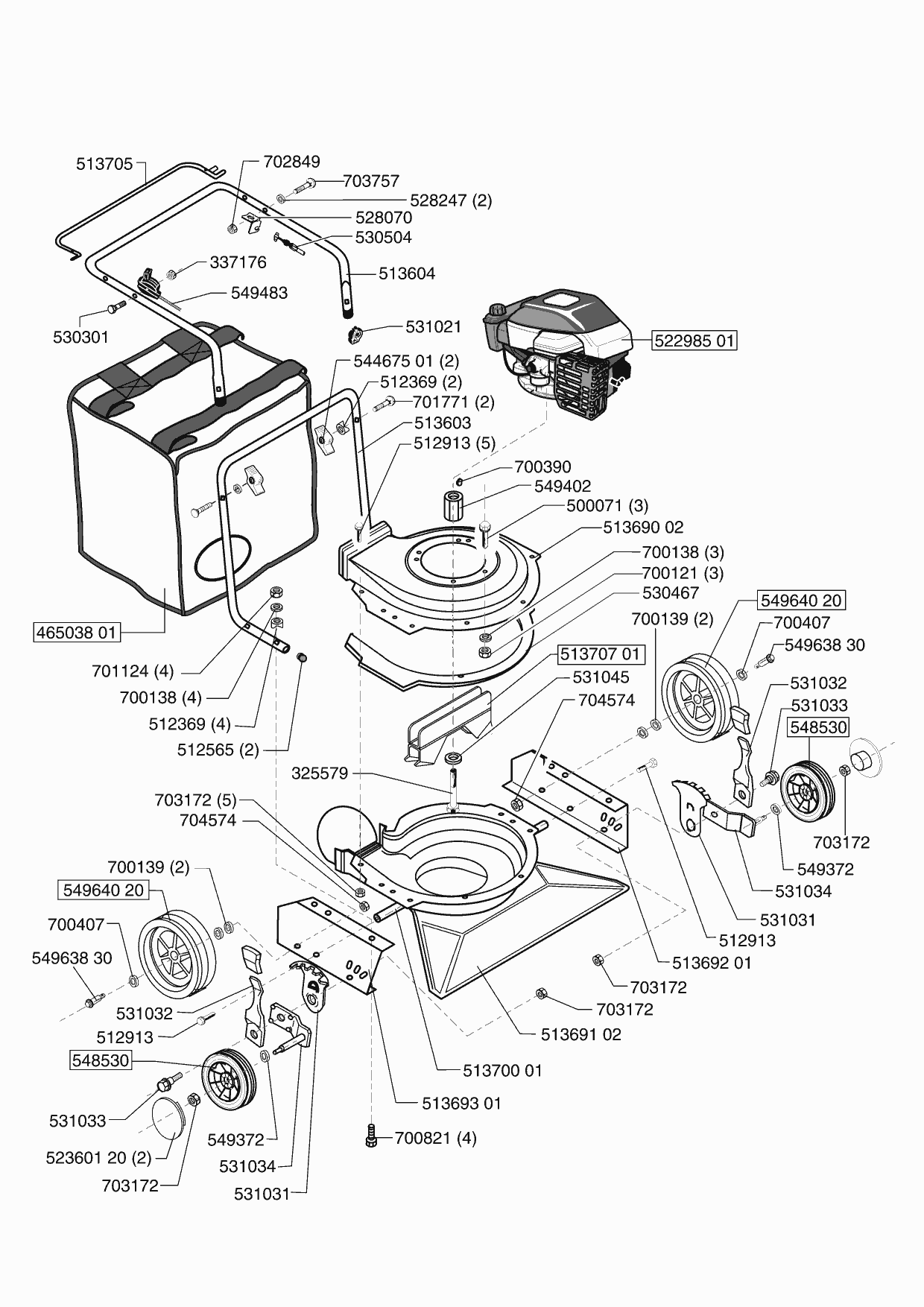 Zeichnungen von Powerline Laubsauger 750 B 06/2002 - 05/2003 mit der Geräte-Artikelnr. 121014: