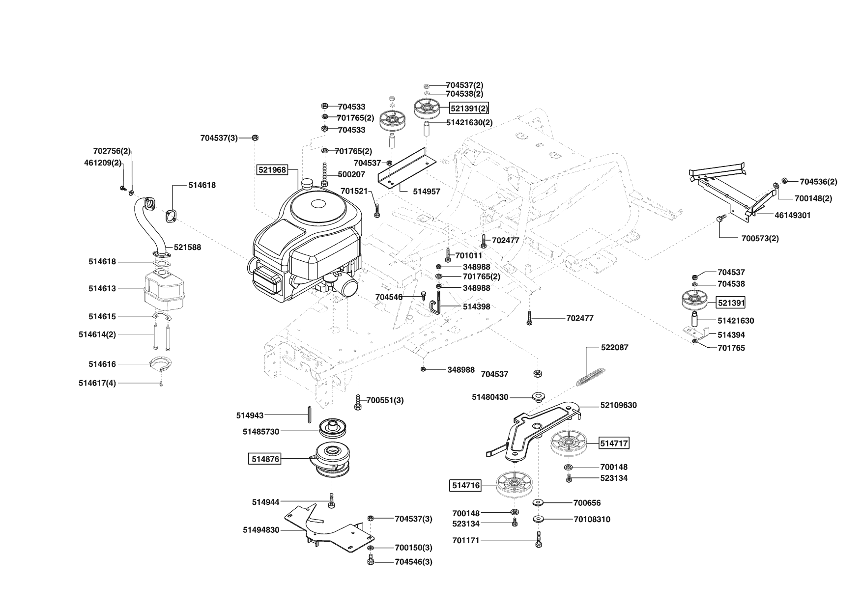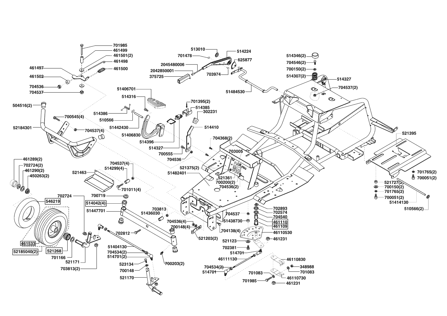 Zeichnungen von Euro Line Rasentraktor T 17/102 HD 06/2005 - 01/2007 mit der Geräte-Artikelnr. 118674: