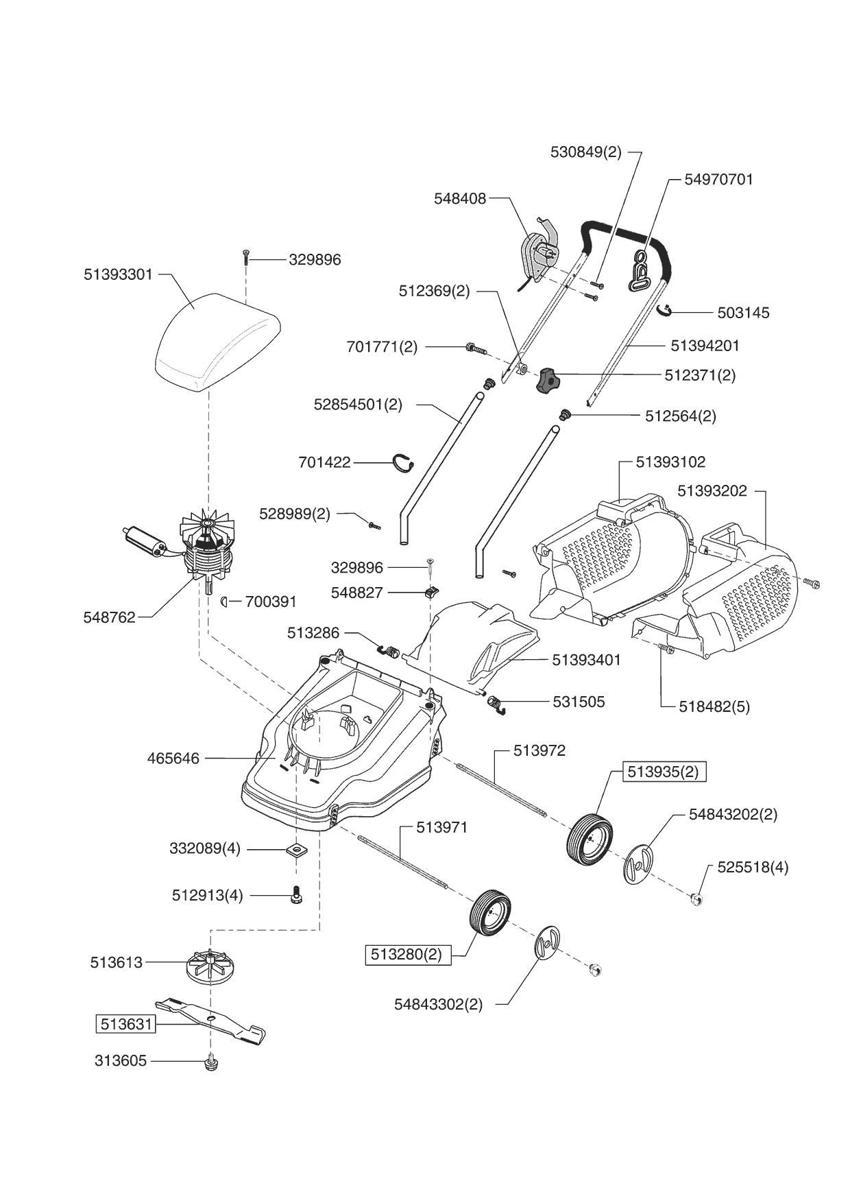 Zeichnungen von Sigma Elektrorasenmäher GL 38 E 06/2005 - 09/2008 mit der Geräte-Artikelnr. 121210: