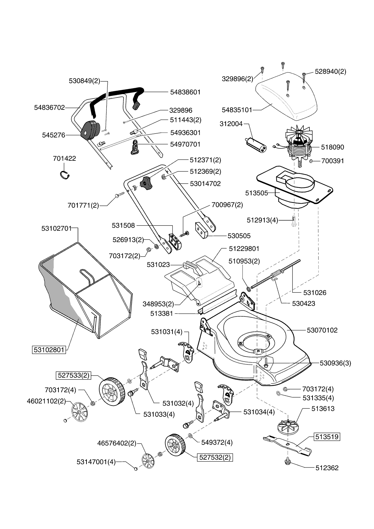 Zeichnungen von Sigma Elektrorasenmäher SL 400 E 06/2006 - 05/2009 mit der Geräte-Artikelnr. 121224: