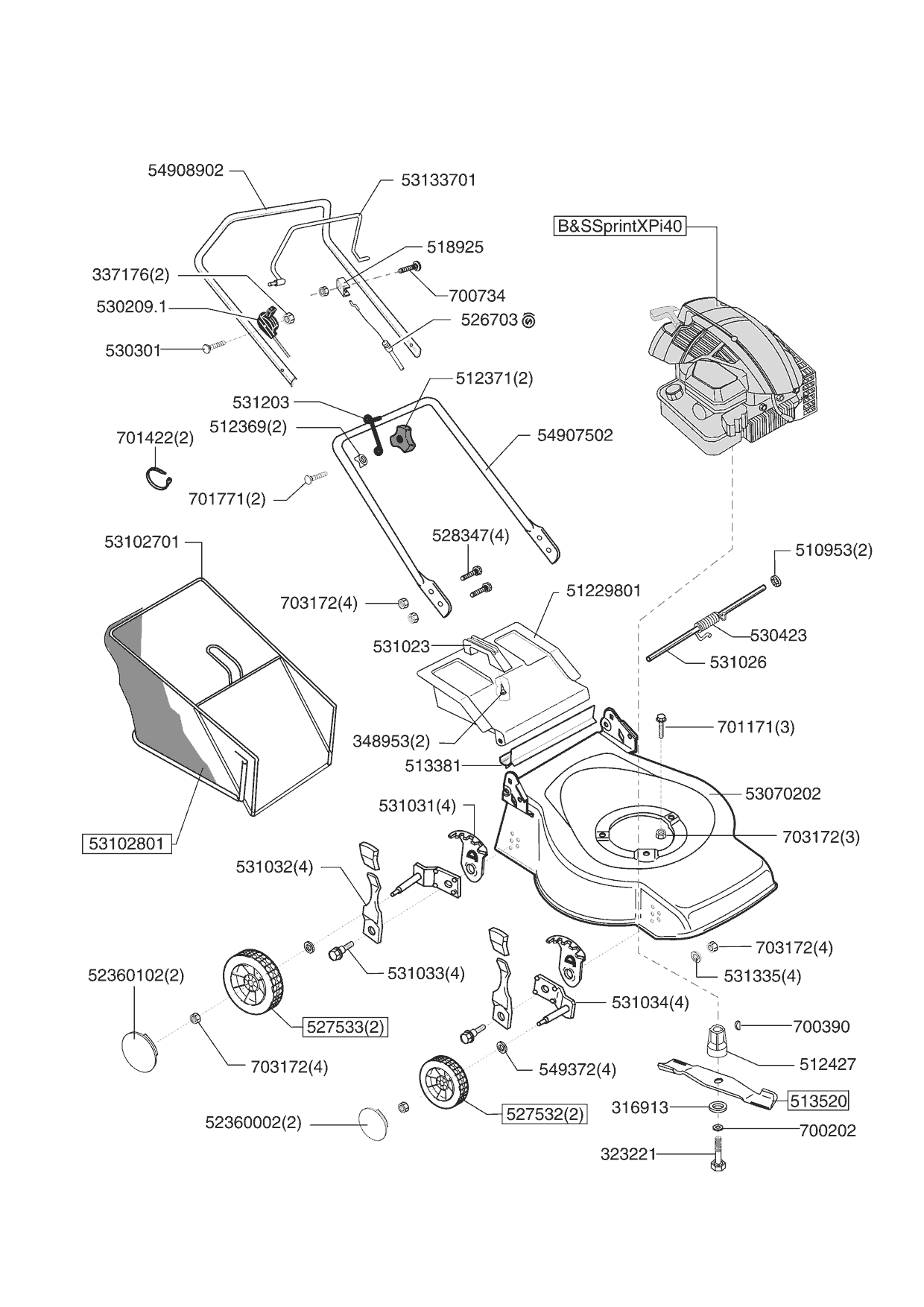 Zeichnungen von Sigma Benzinrasenmäher SL 46 B Sprint 40 07/2004 - 06/2006 mit der Geräte-Artikelnr. 121140: