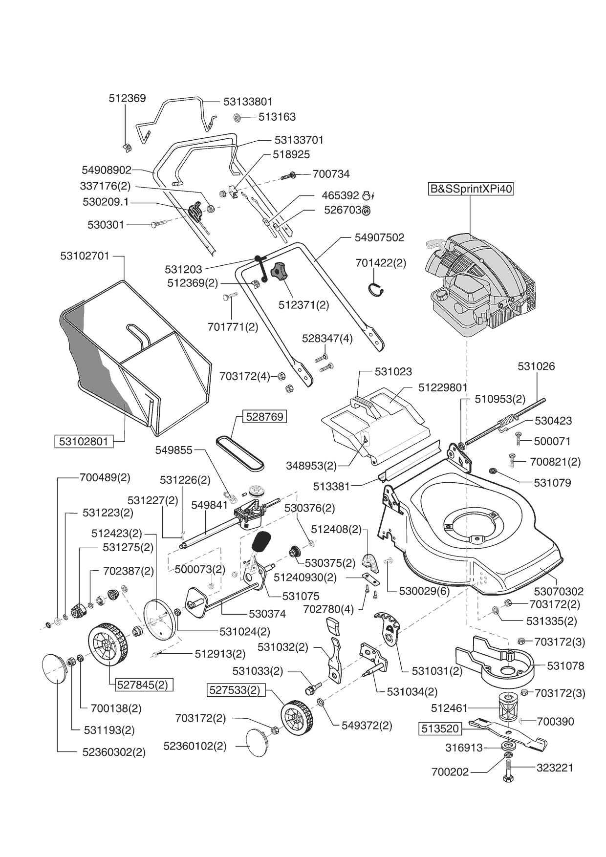 Zeichnungen von Sigma Benzinrasenmäher SL 46 BR Sprint 40 07/2005 - 06/2006 mit der Geräte-Artikelnr. 121141: