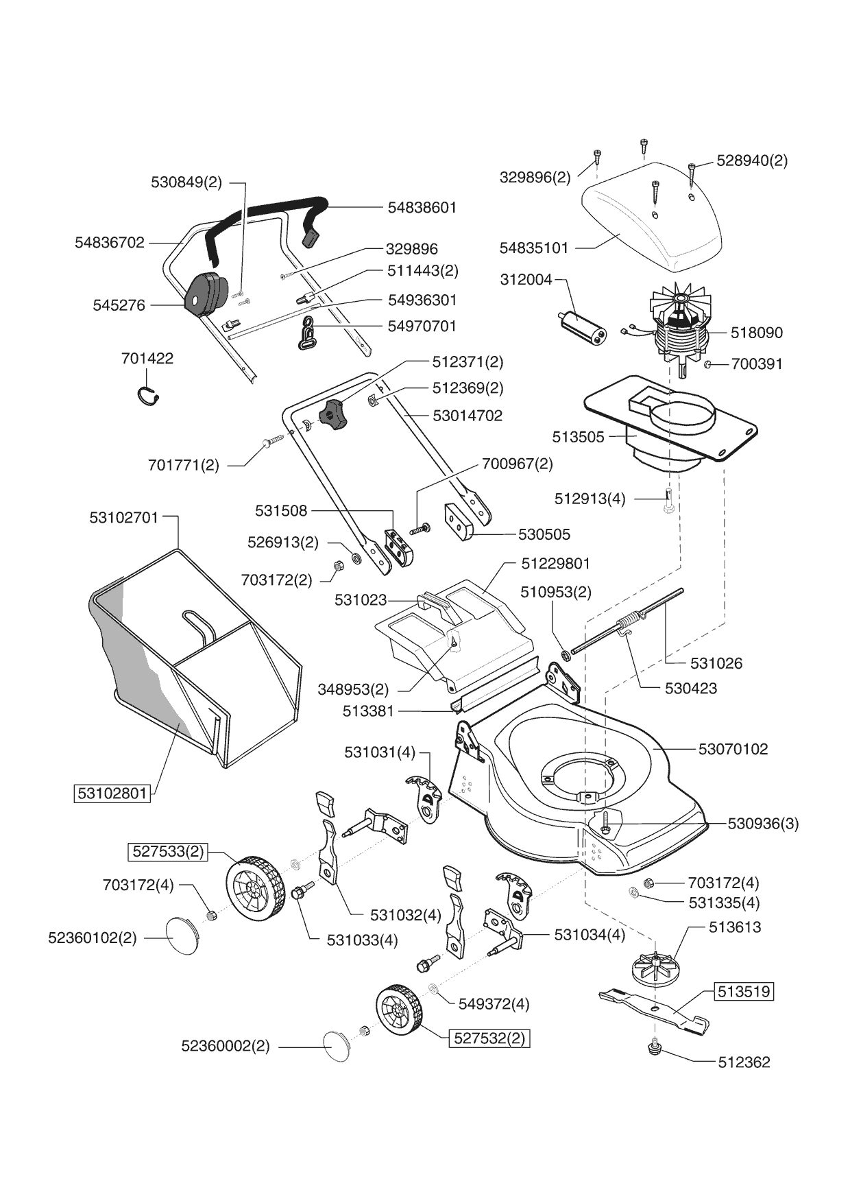 Zeichnungen von Sigma Elektrorasenmäher SL 400 E 07/2005 - 06/2006 mit der Geräte-Artikelnr. 121224: