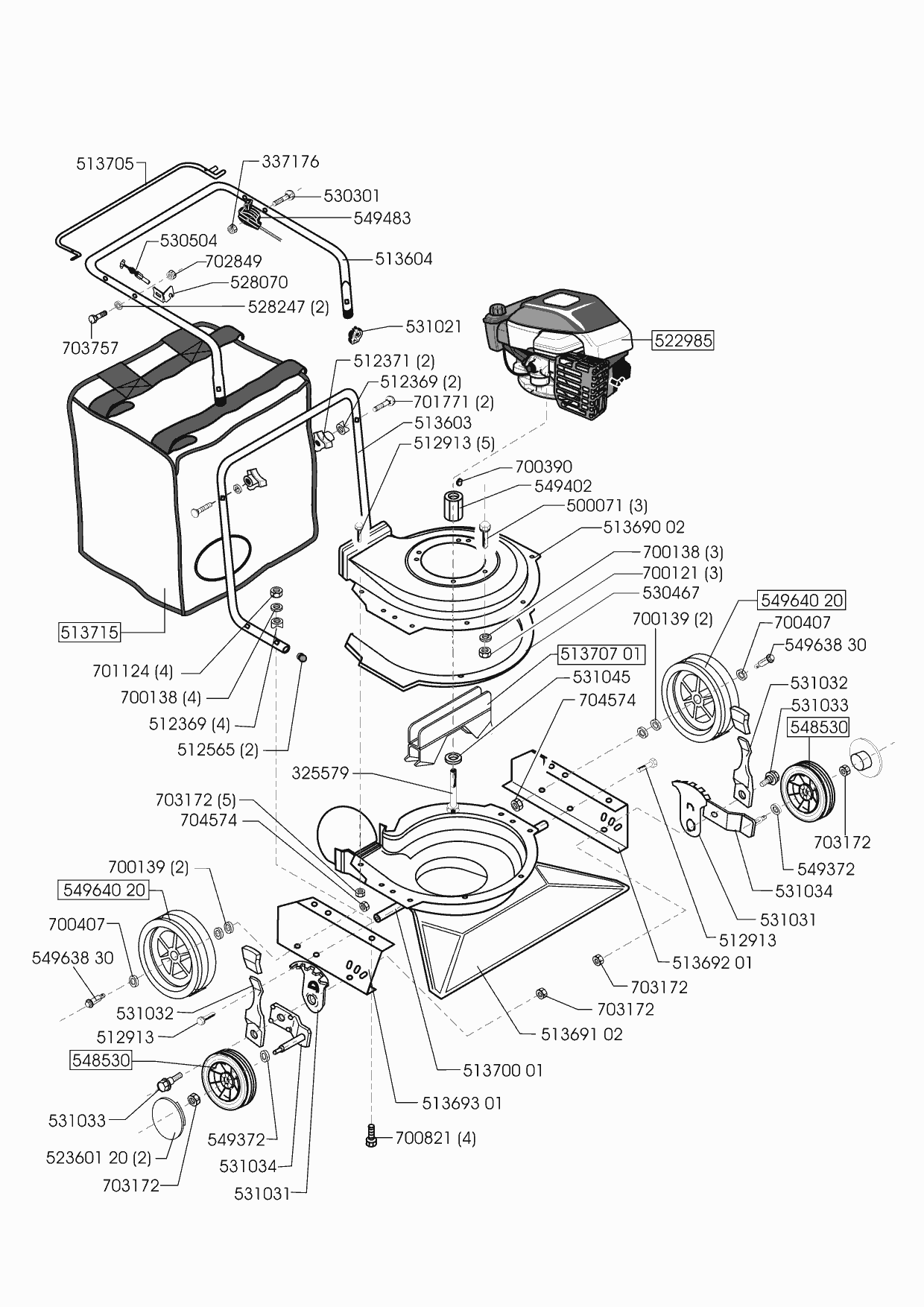 Zeichnungen von Powerline Laubsauger 750 B 09/2001 - 06/2002 mit der Geräte-Artikelnr. 121014:
