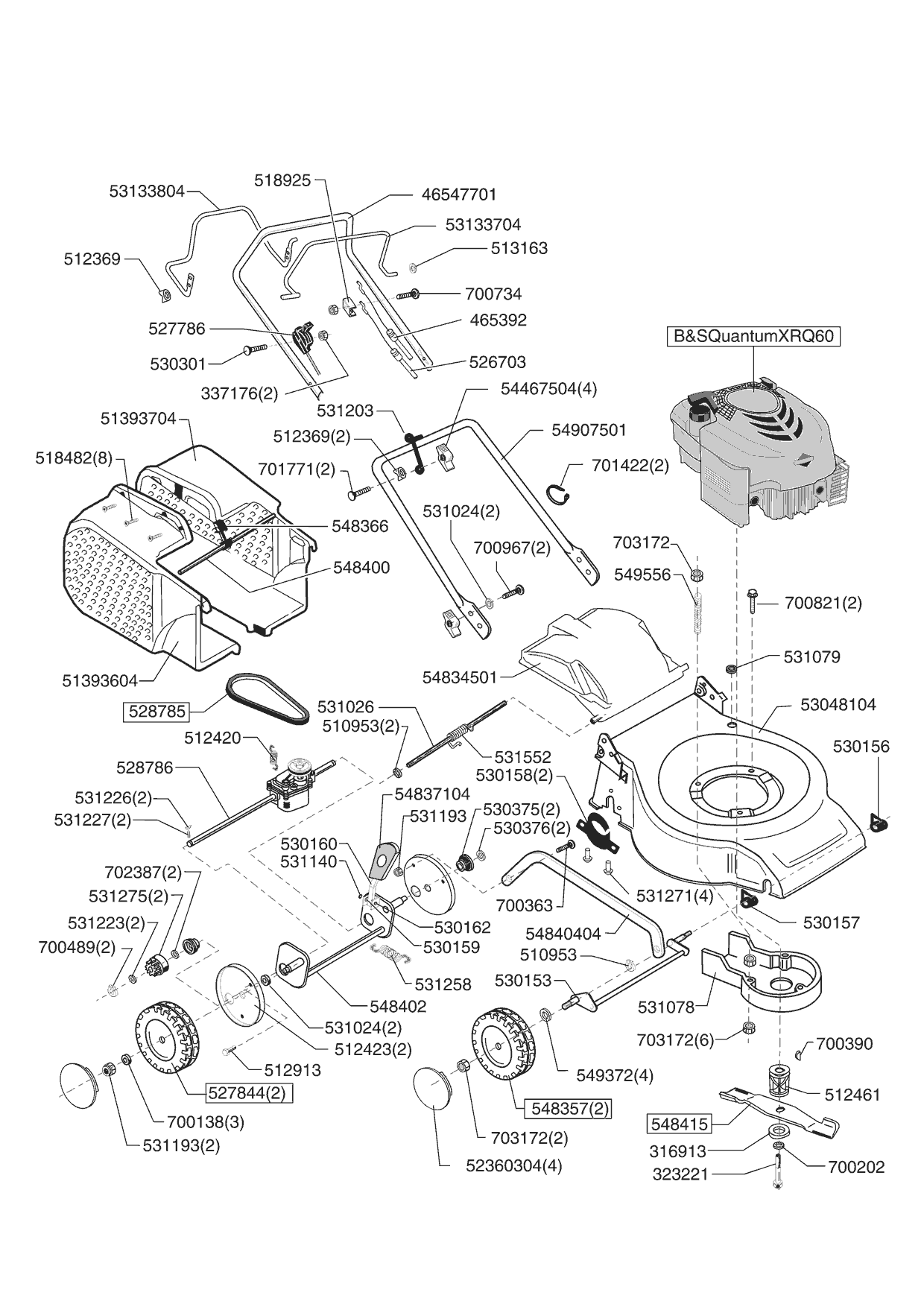 Zeichnungen von Ginge Benzinrasenmäher CF 520 B AUTO 09/2005 - 05/2006 mit der Geräte-Artikelnr. 121247: