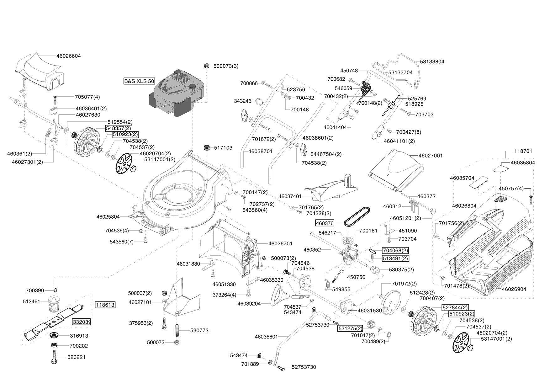 Zeichnungen von Ginge Benzinrasenmäher Comfort 470 B Auto Bio-Combi 09/2005 - 05/2006 mit der Geräte-Artikelnr. 118760: