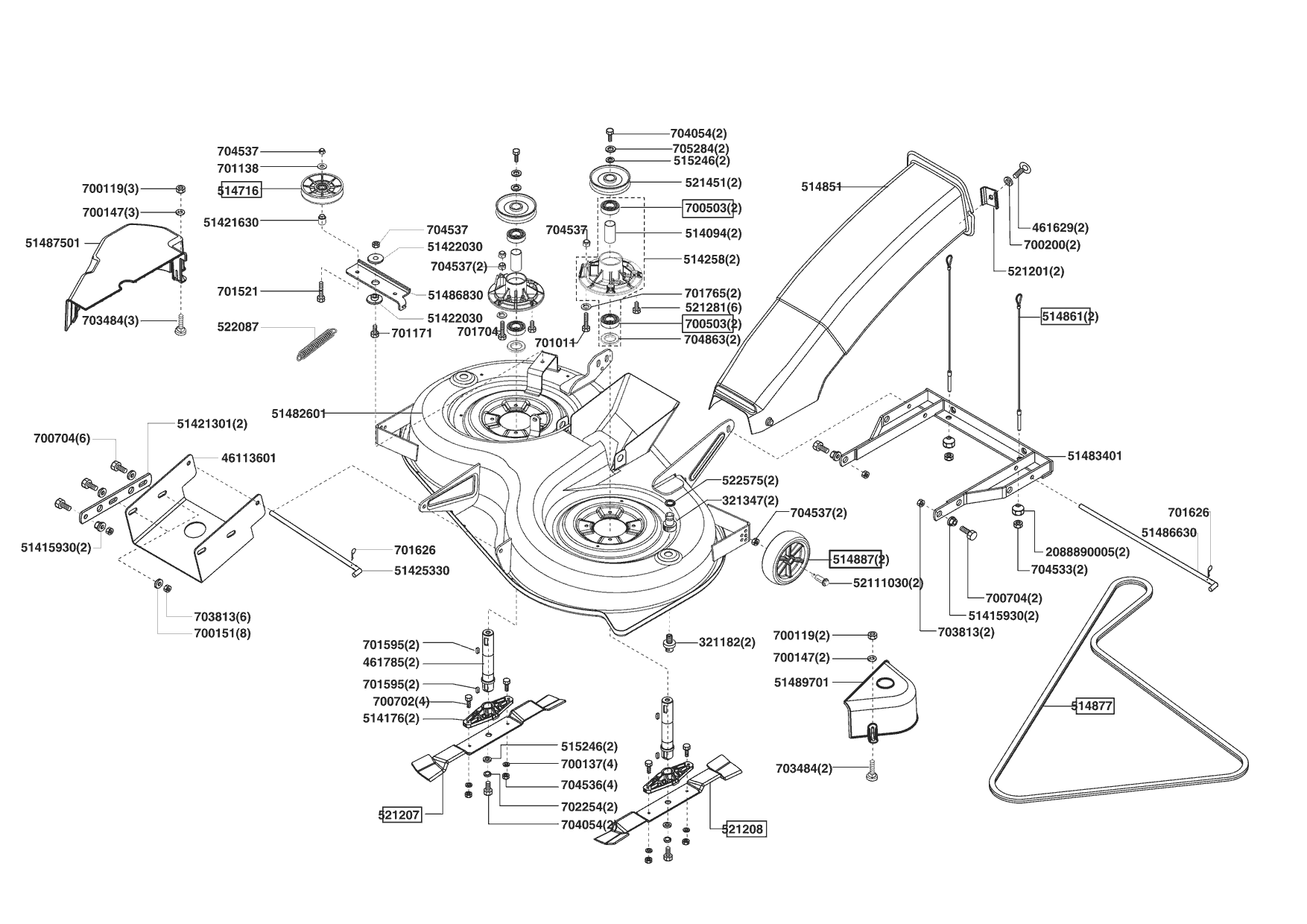 Zeichnungen von Powerline Rasentraktor T 20-102 HDE 09/2006 - 10/2007 mit der Geräte-Artikelnr. 118871: