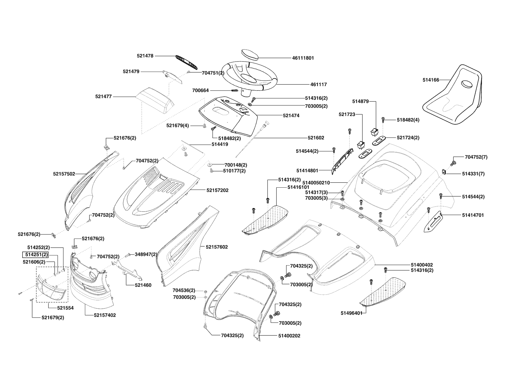 Zeichnungen von Powerline Rasentraktor T20/102 HDE 09/2007 - 10/2007 mit der Geräte-Artikelnr. 118981:
