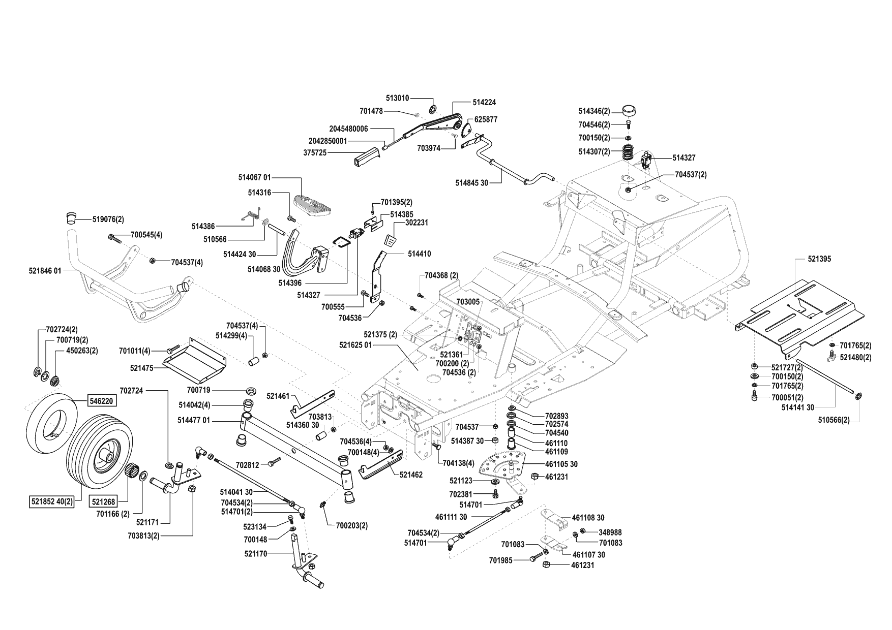 Zeichnungen von Concord Rasentraktor T20-102 HDE 10/2003 - 04/2004 mit der Geräte-Artikelnr. 118241: