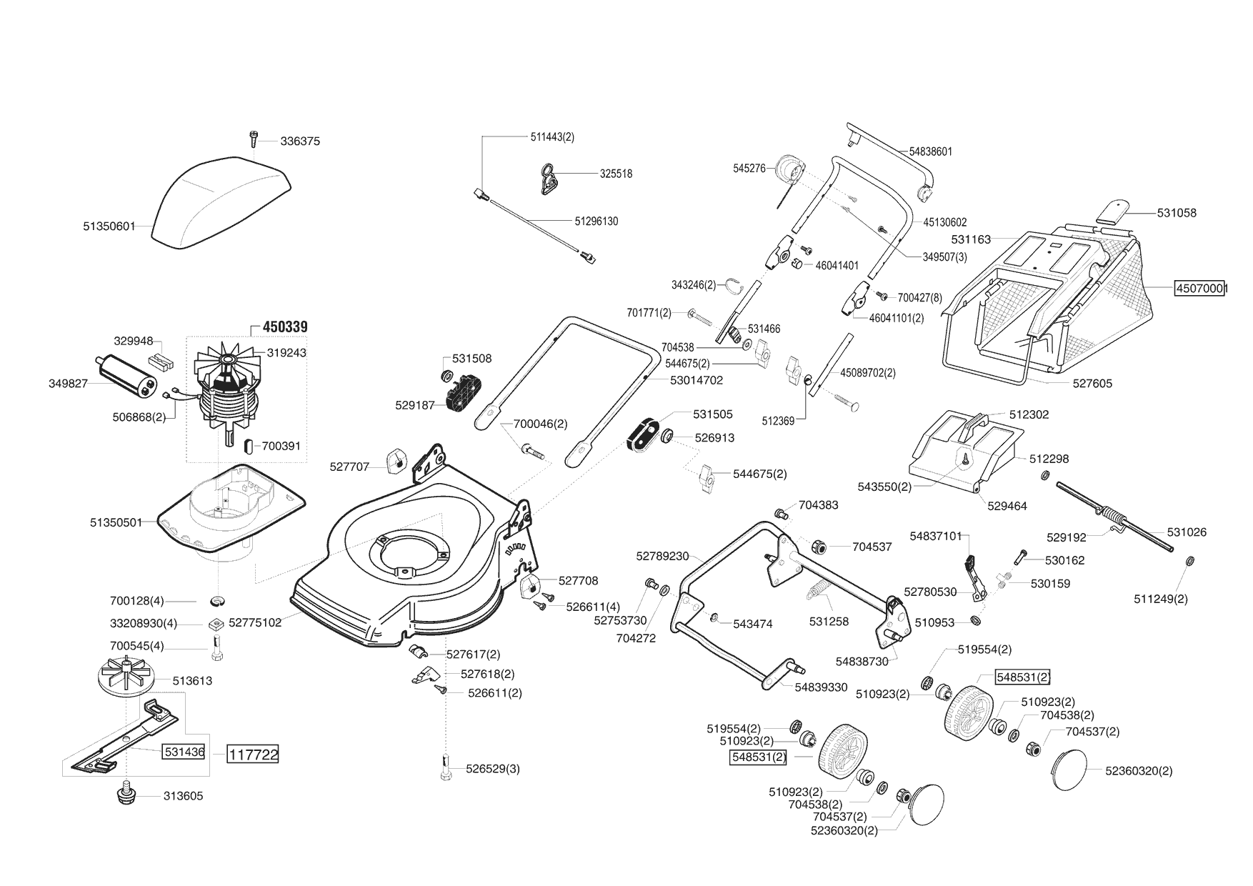 Zeichnungen von Powerline Elektrorasenmäher 4700 E 10/2005 - 11/2006 mit der Geräte-Artikelnr. 118779: