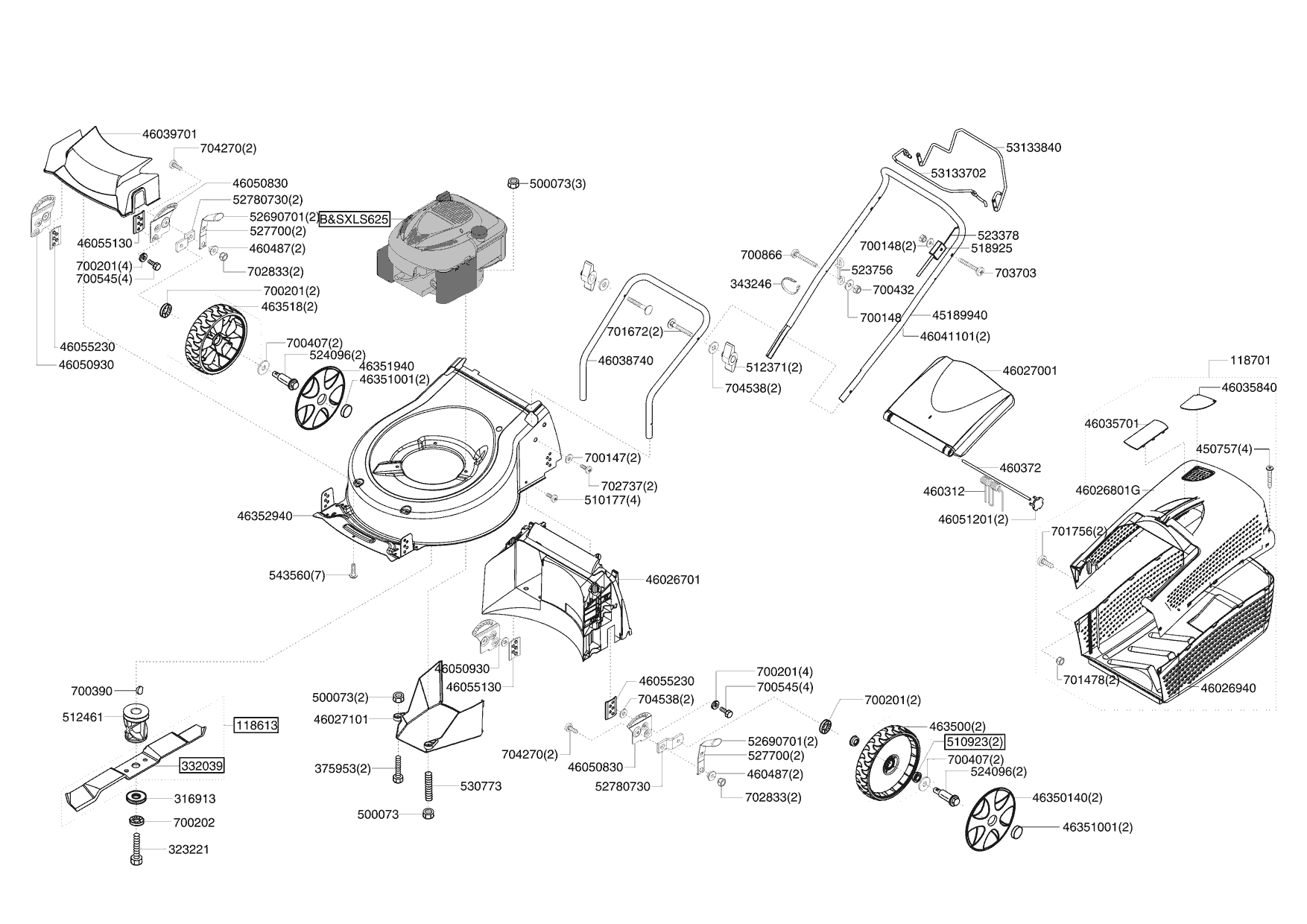 Zeichnungen von Ginge Benzinrasenmäher SILVER COMFORT 51B AUTO 10/2007 -01/2008 mit der Geräte-Artikelnr. 119072: