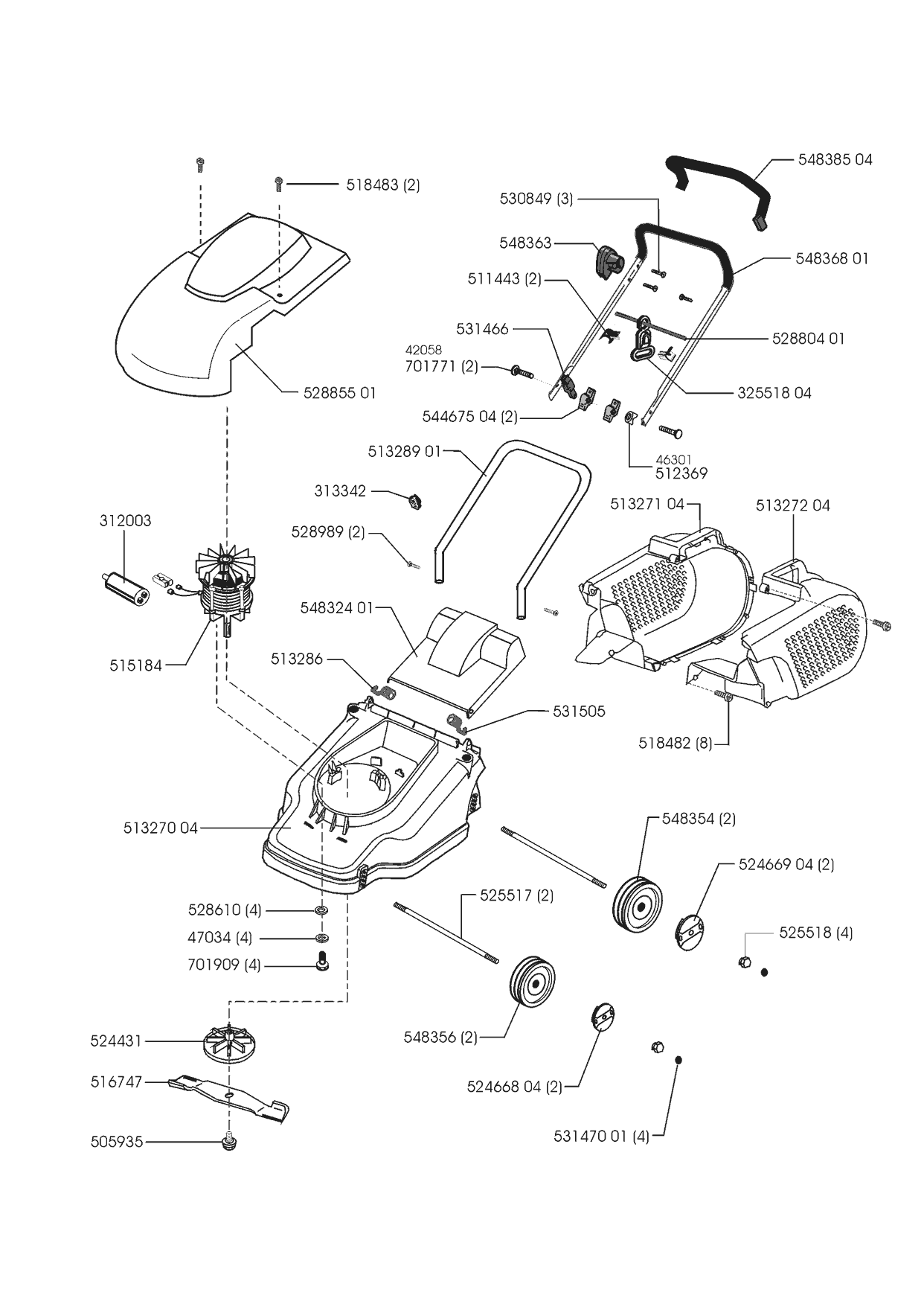 Zeichnungen von Sigma Elektrorasenmäher CF 32 E 11/1999 - 11/2002 mit der Geräte-Artikelnr. 120510: