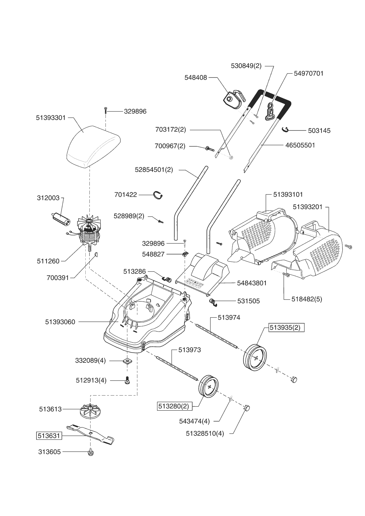 Zeichnungen von Sigma Elektrorasenmäher SPECIAL 380 E 11/2005 - 03/2006 mit der Geräte-Artikelnr. 121193:
