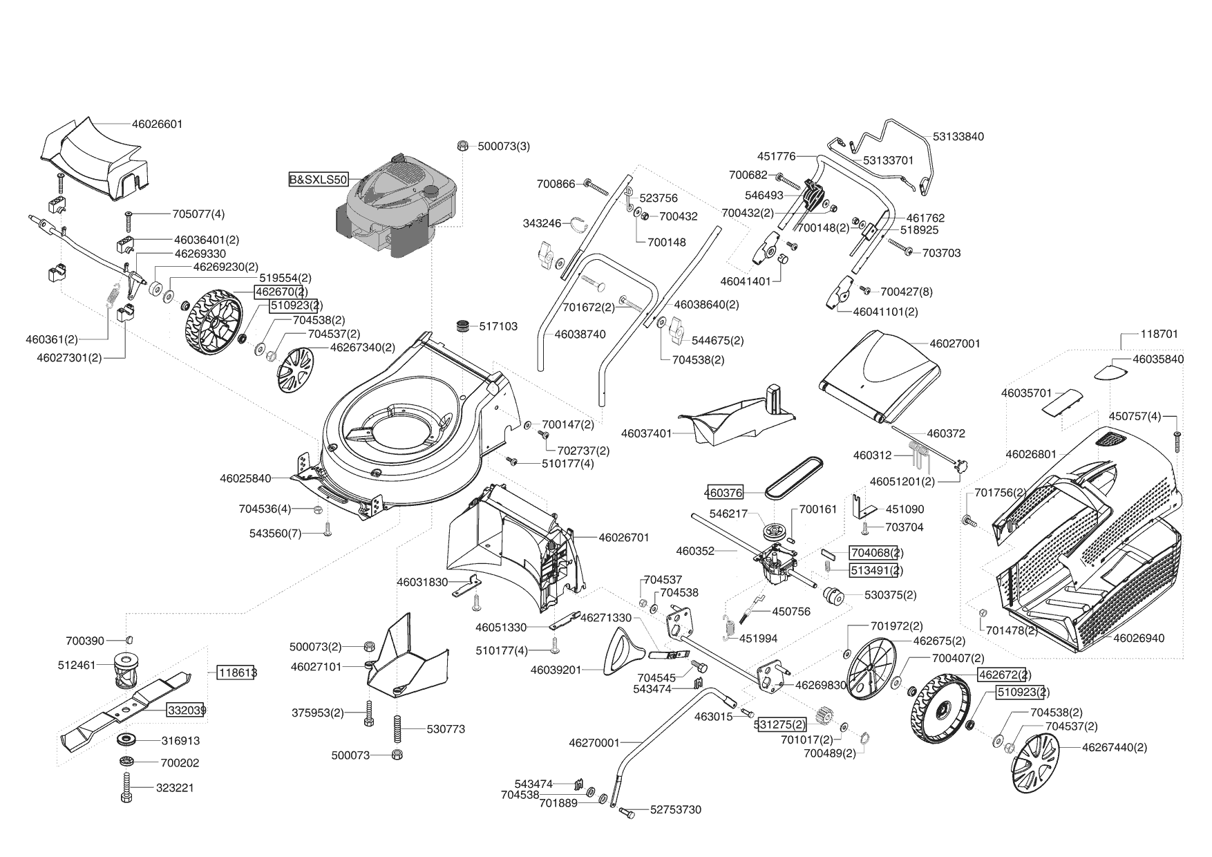 Zeichnungen von Ginge Benzinrasenmäher SILVER 470 B AUTO 11/2006 - 01/2007 mit der Geräte-Artikelnr. 118968: