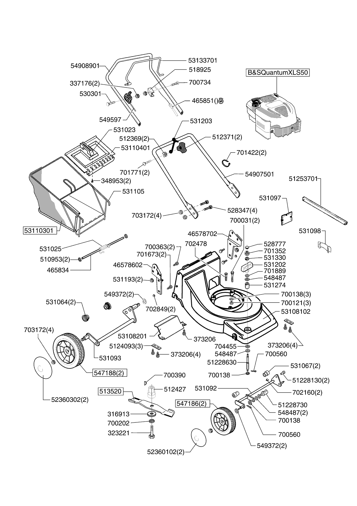 Zeichnungen von Sigma Benzinrasenmäher GLA 47 B 11/2006 - 05/2007 mit der Geräte-Artikelnr. 121214: