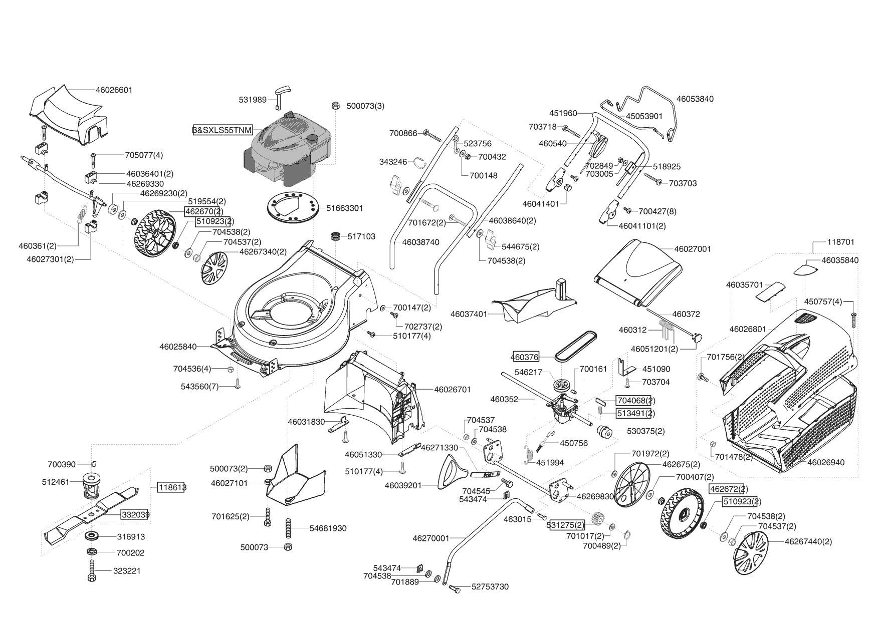 Zeichnungen von Ginge Benzinrasenmäher SILVER 470 B AUTO TNM 11/2006 - 06/2012 mit der Geräte-Artikelnr. 118957:
