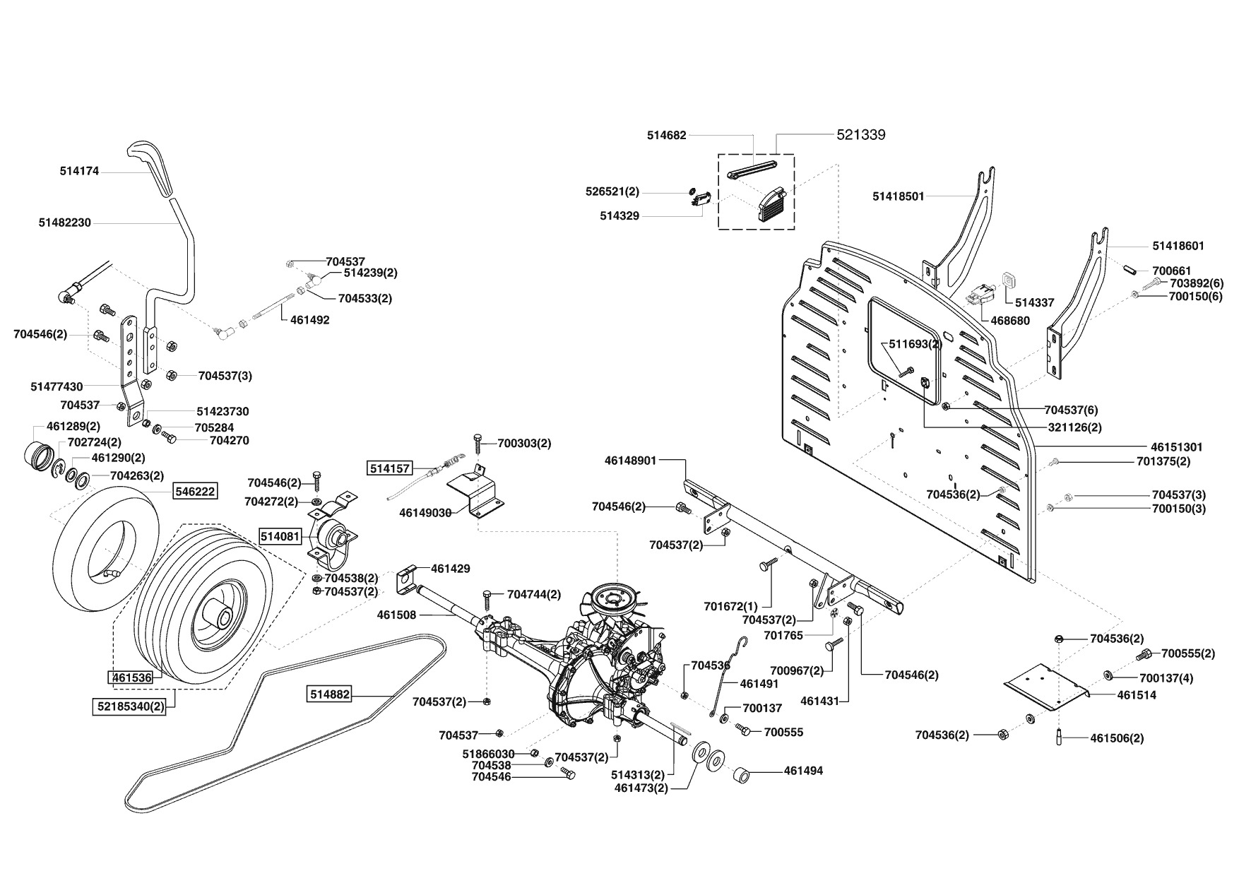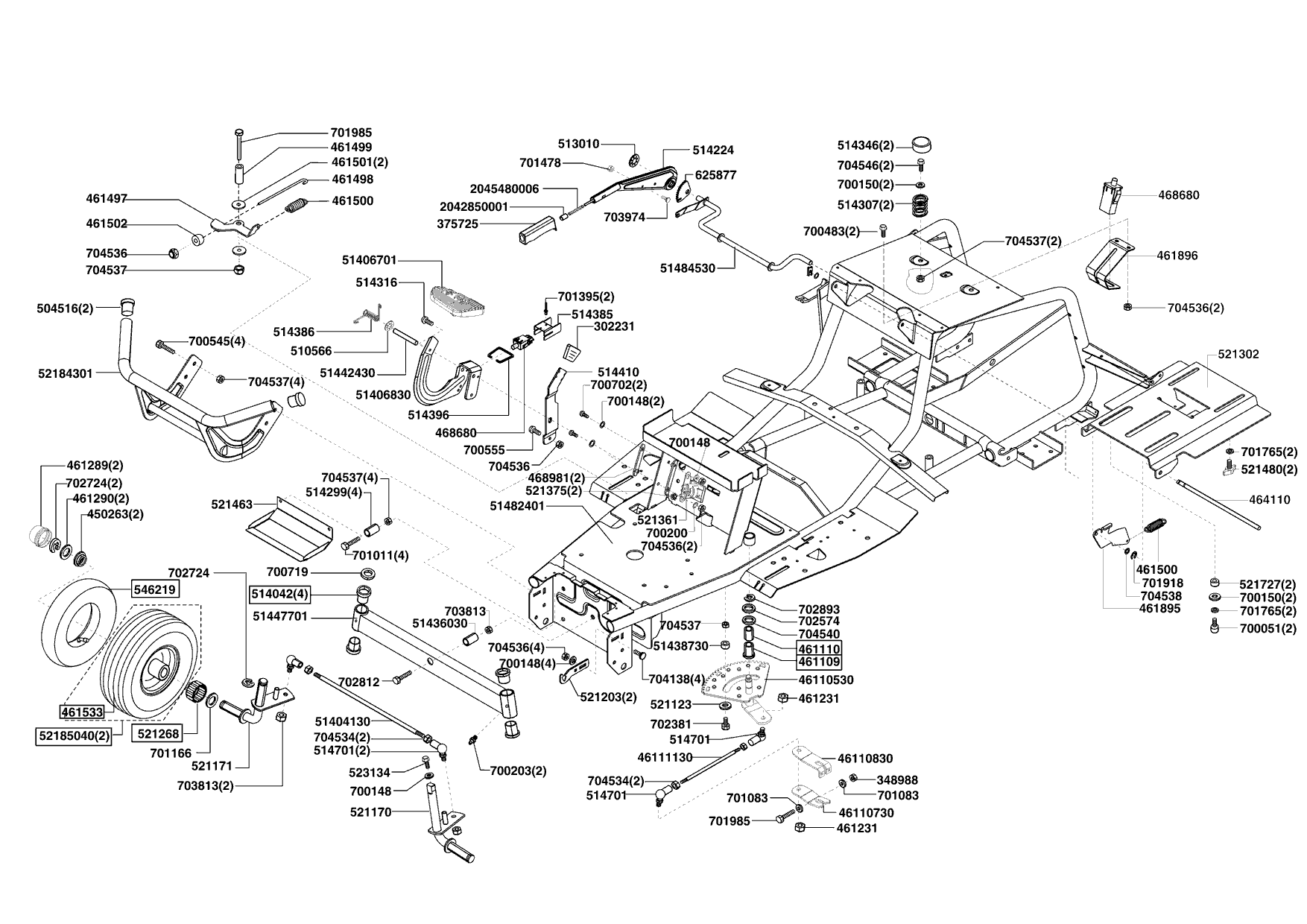 Zeichnungen von Euro Line Rasentraktor T 17/102 HD 11/2008 - 02/2009 mit der Geräte-Artikelnr. 118674: