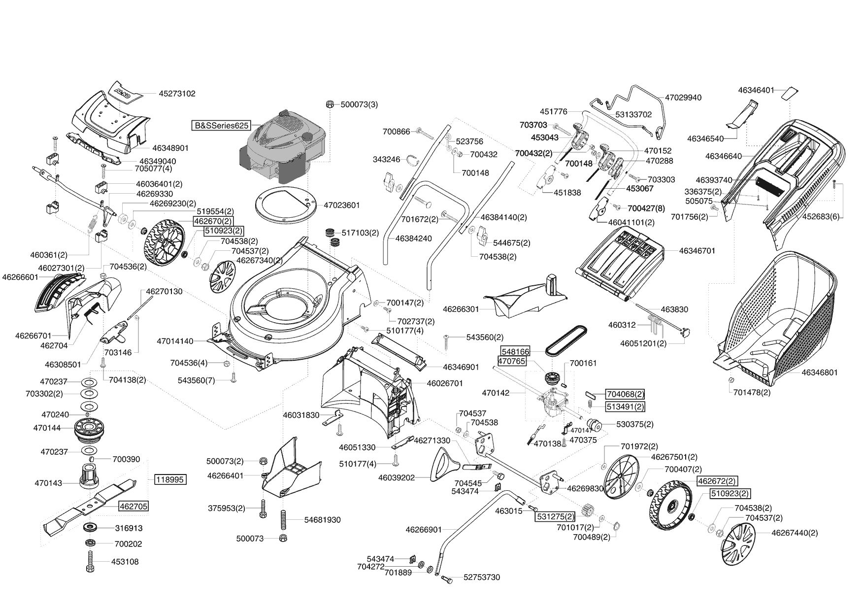 Zeichnungen von Ginge Benzinrasenmäher 520 BV AUTO SILVER 11/2009 - 06/2012 mit der Geräte-Artikelnr. 119201:
