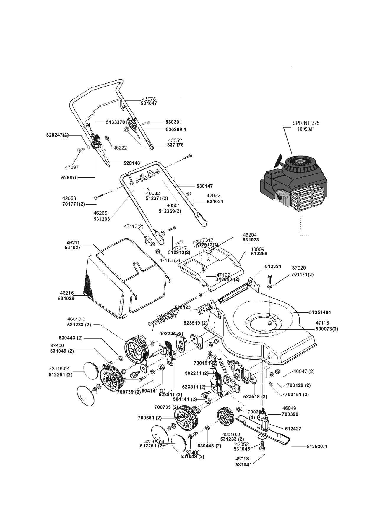 Zeichnungen von Ginge Benzinrasenmäher CL 46 B 12/1998 - 03/2000 mit der Geräte-Artikelnr. 120476: