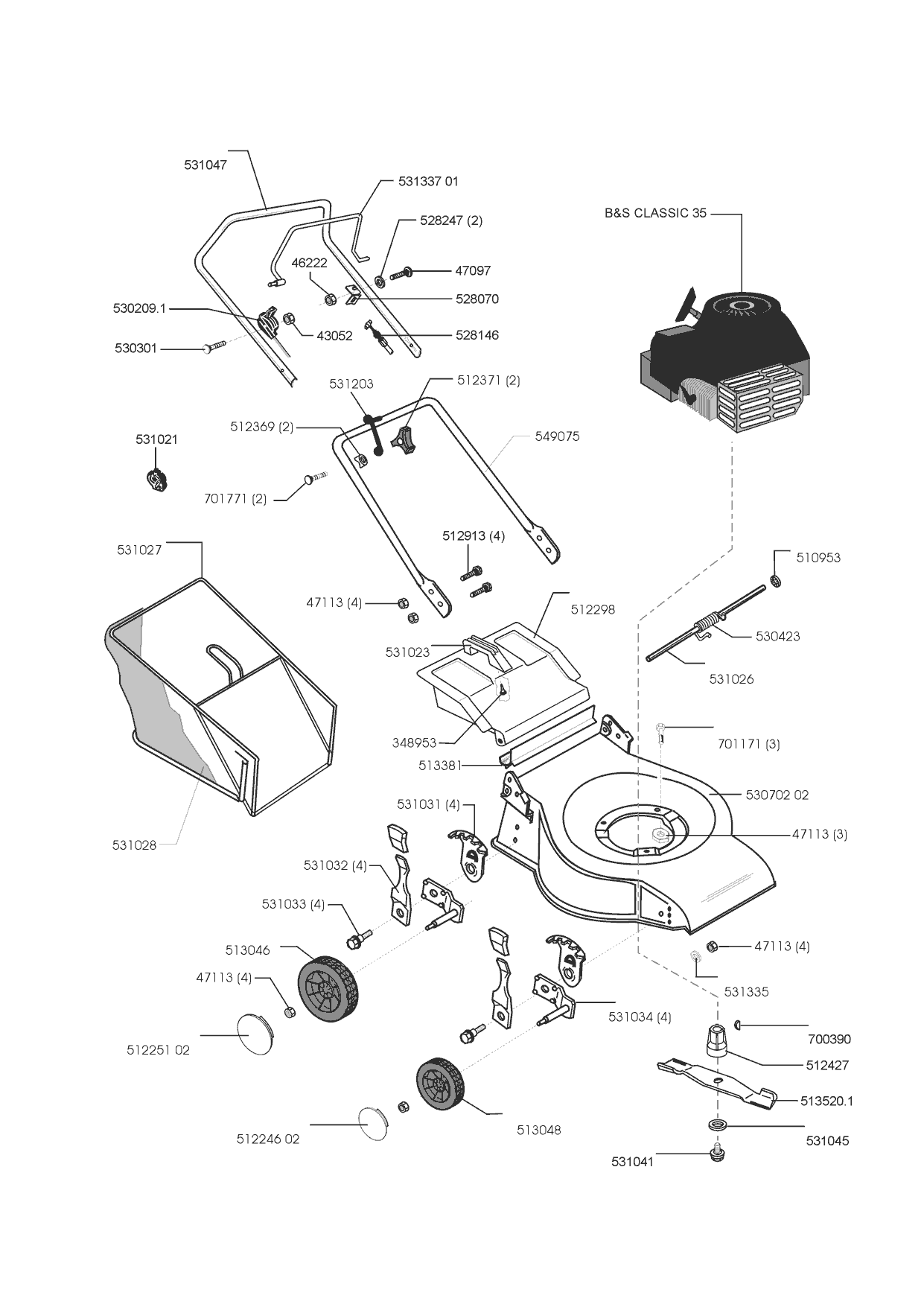 Zeichnungen von Sigma Benzinrasenmäher SL 45 B 12/1999 - 11/2002 mit der Geräte-Artikelnr. 120587: